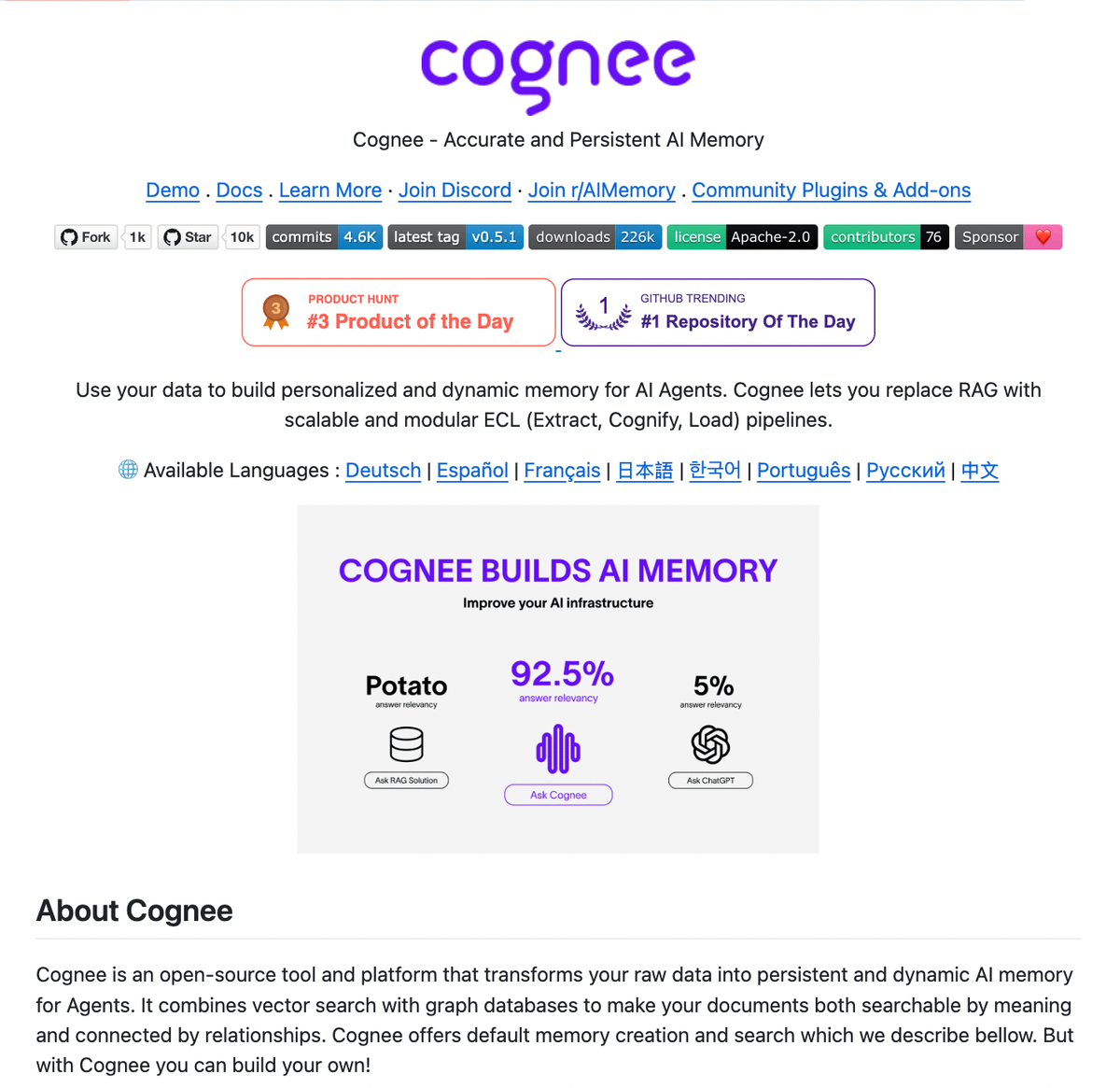 Build Agents that never forget! Cognee turns raw text into a knowledge ...