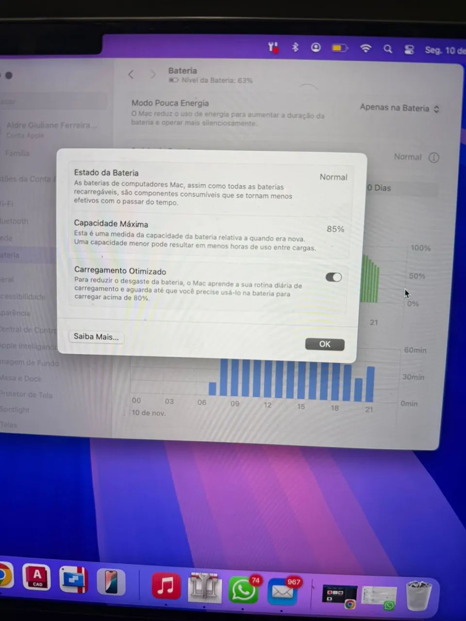 Macbook Pro M2. SSD 512 GB. Mem. 16 GB. Ciclos 70 Até 18 x Cartão ...
