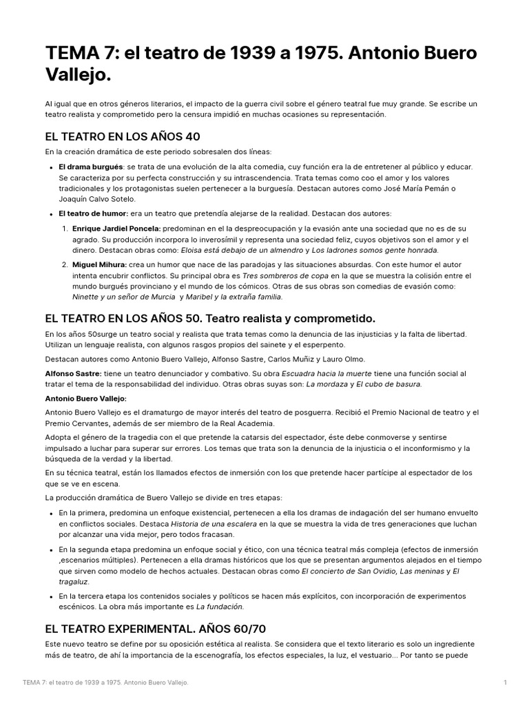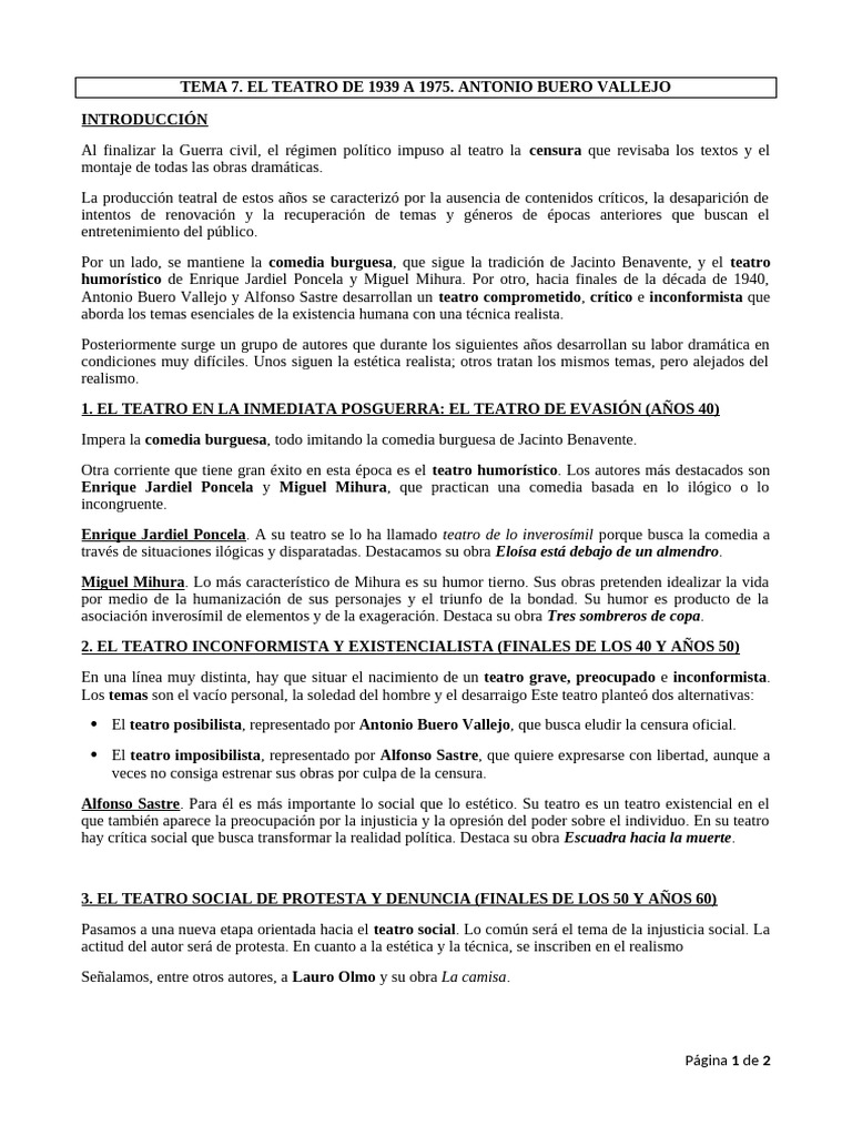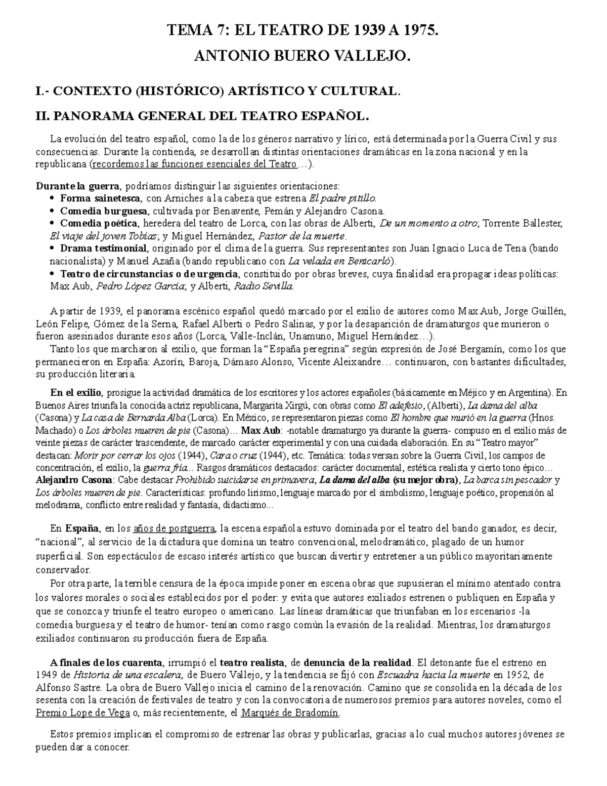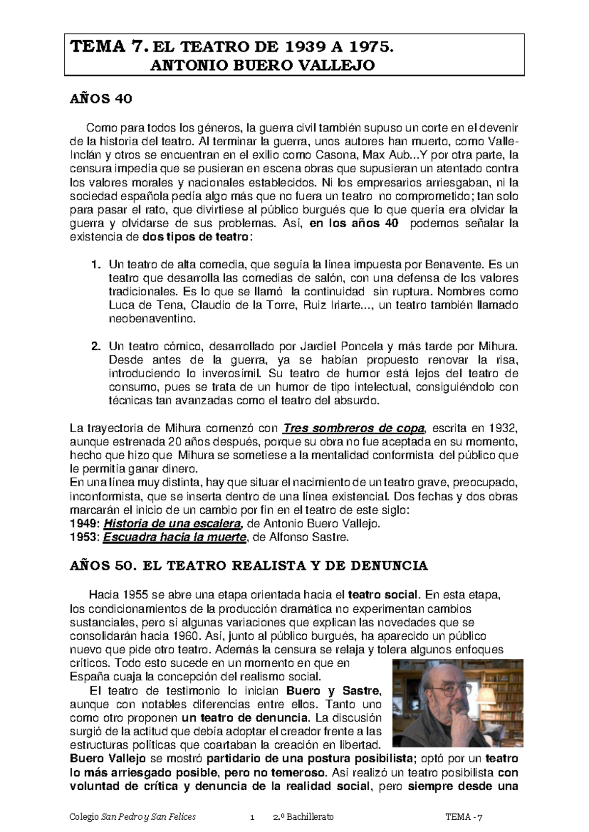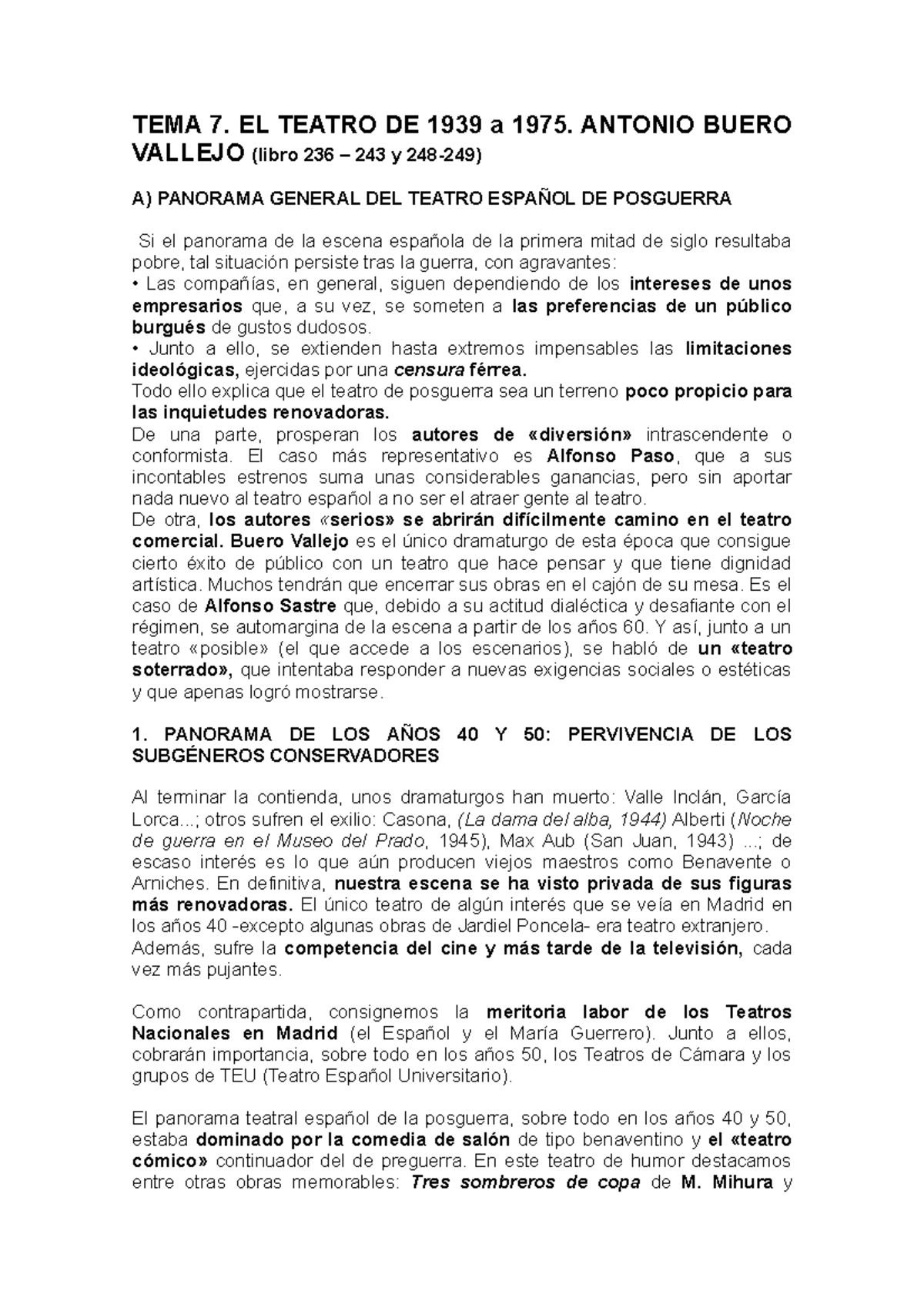 Tema 7. El Teatro de 1939 A 1975. Antonio Buero Vallejo. | PDF