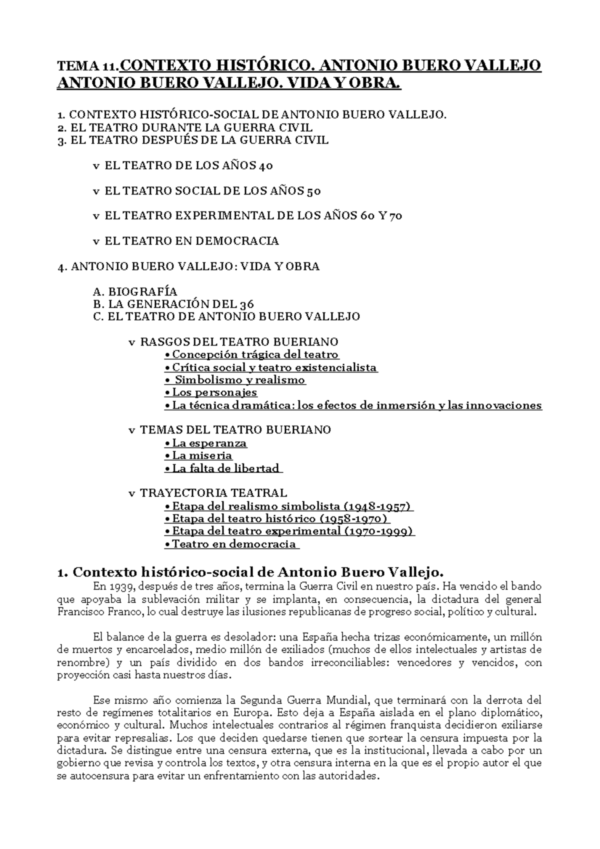 Unidad 11. Teatro Y Buero - TEMA 11 HISTÓRICO. ANTONIO BUERO VALLEJO ...