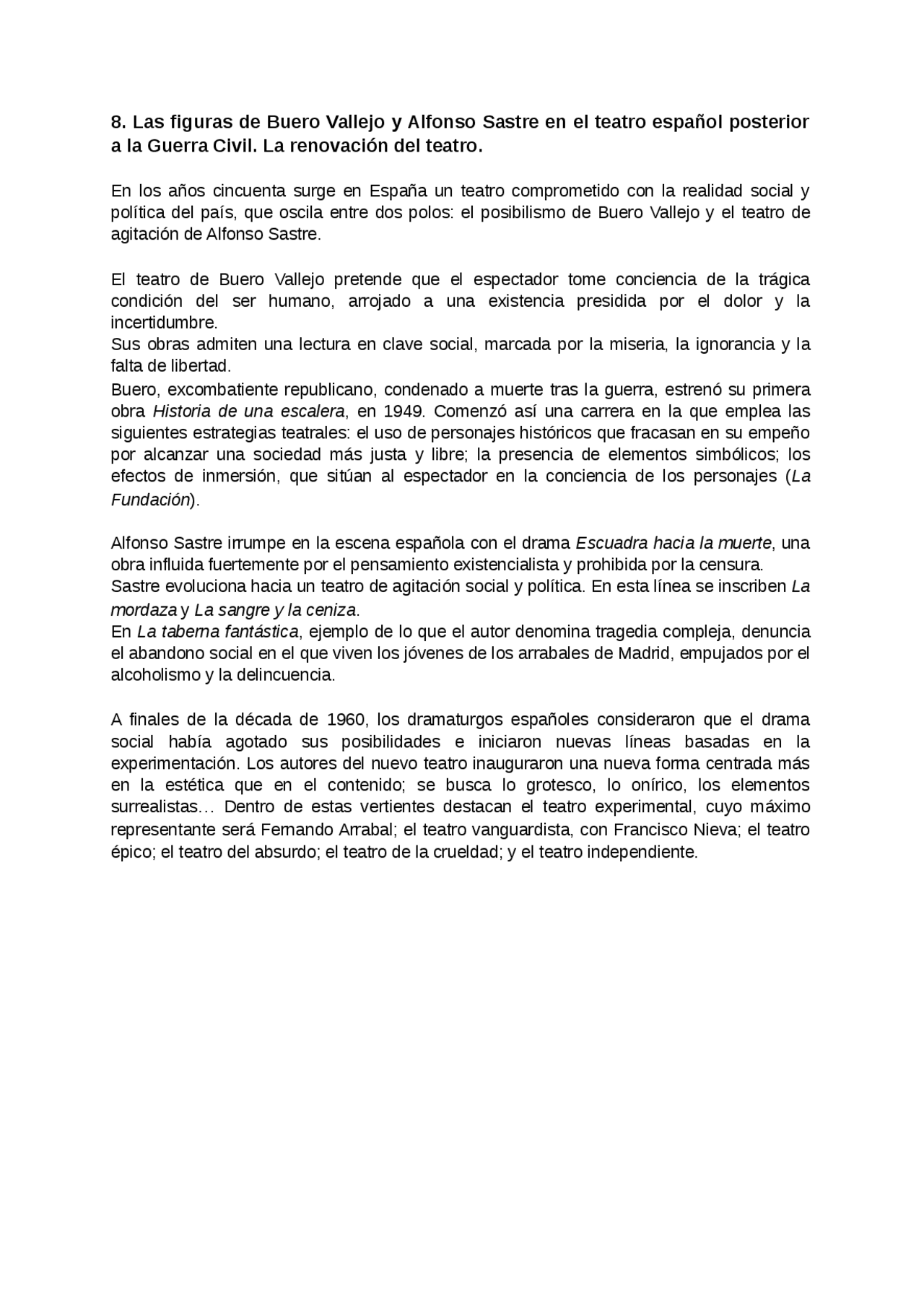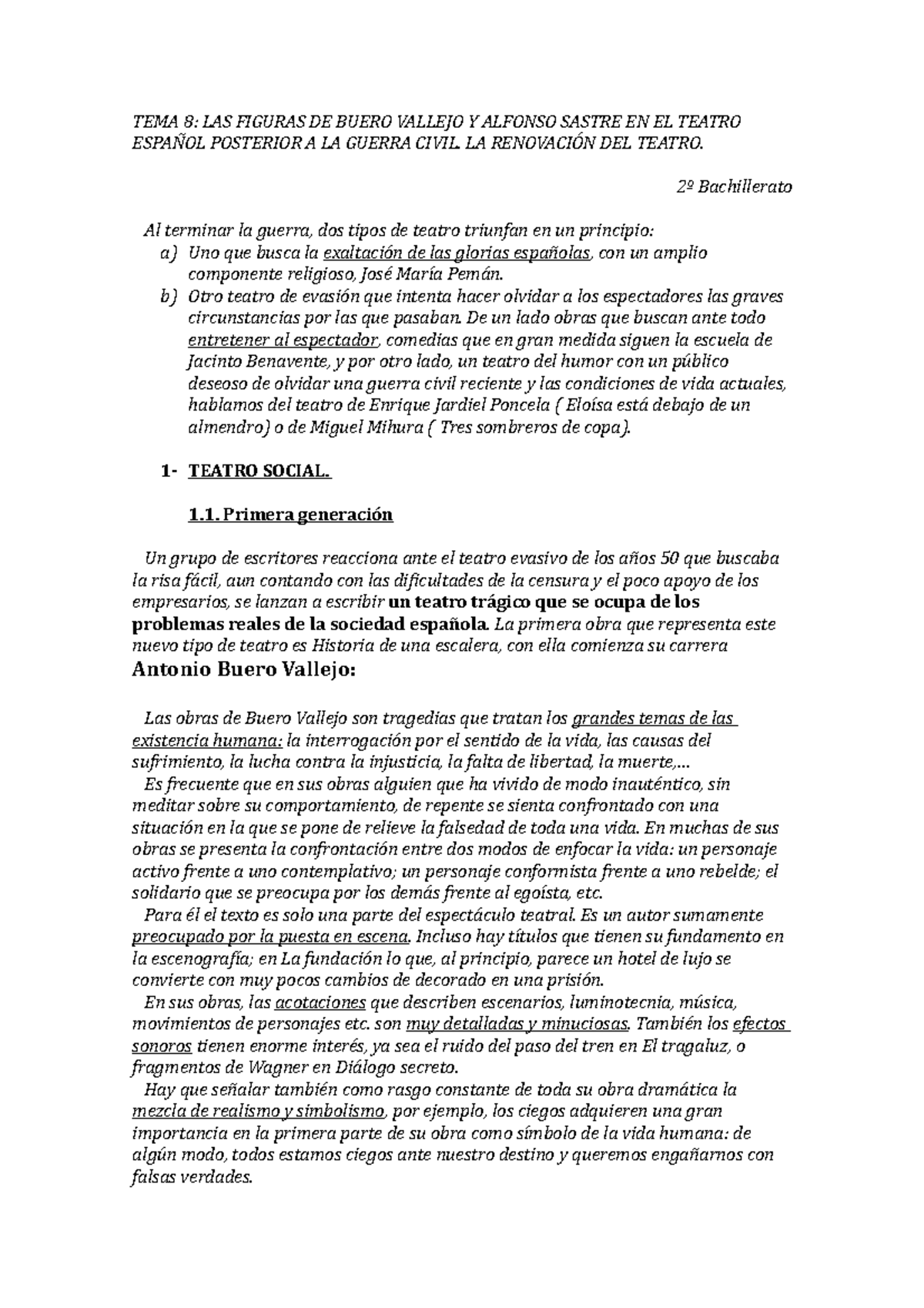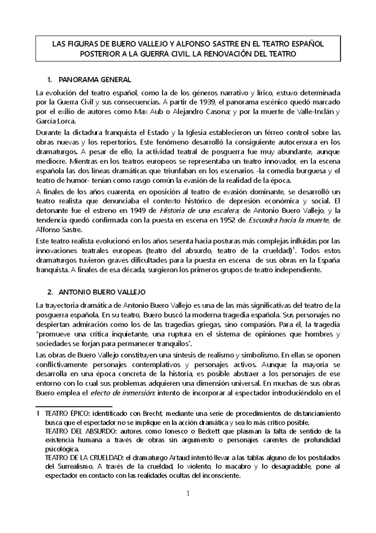 TEMA 8 - Las Figuras de Buero Vallejo y Alfonso Sastre... | PDF | Teatro