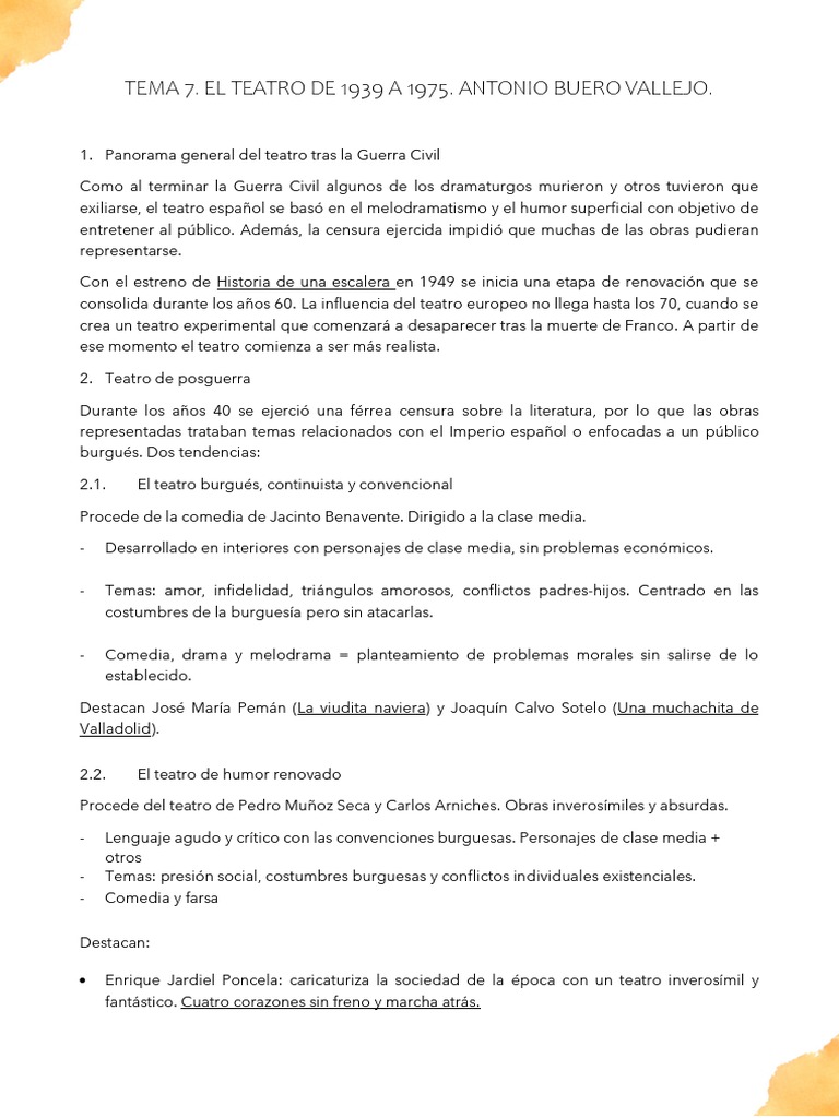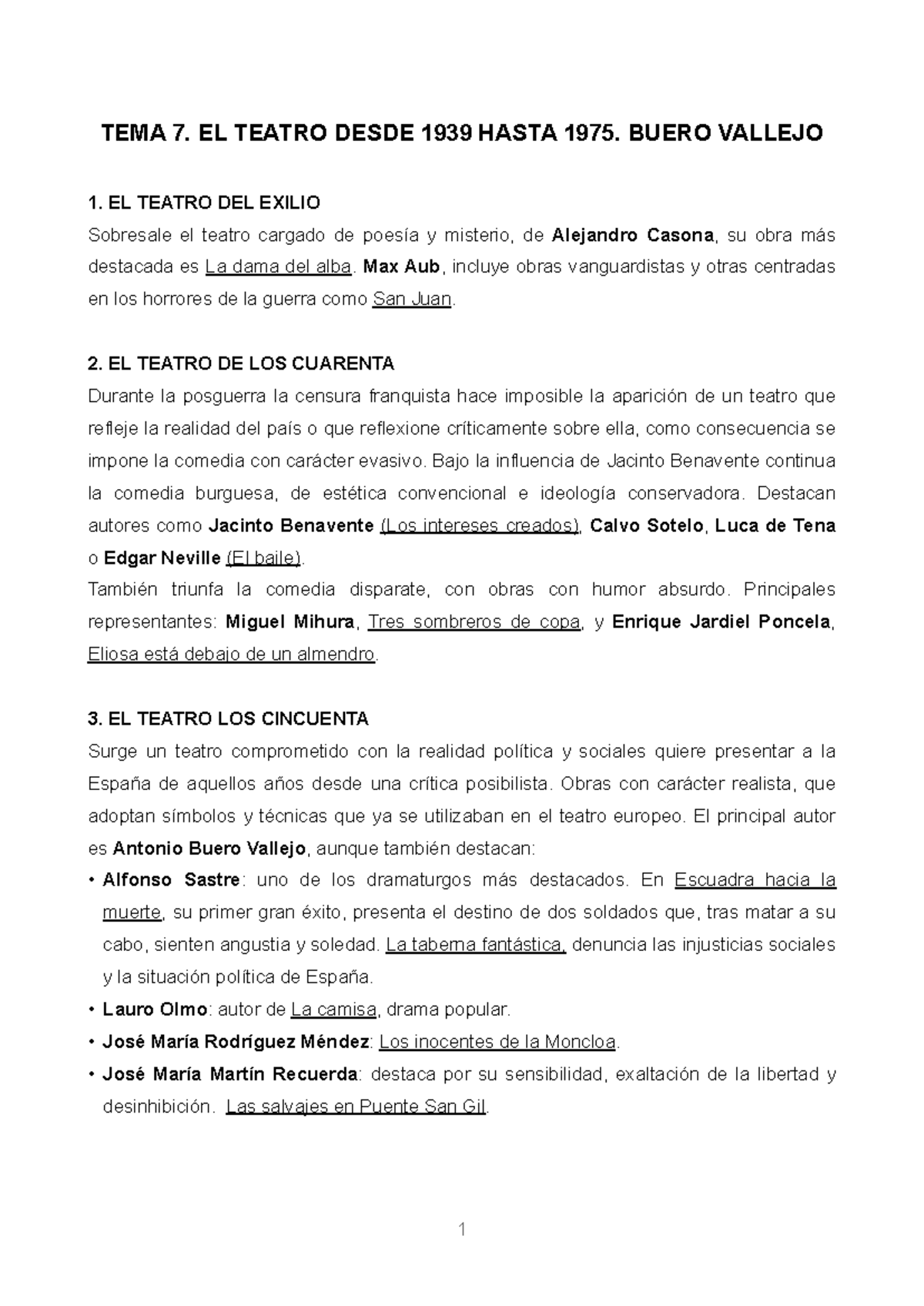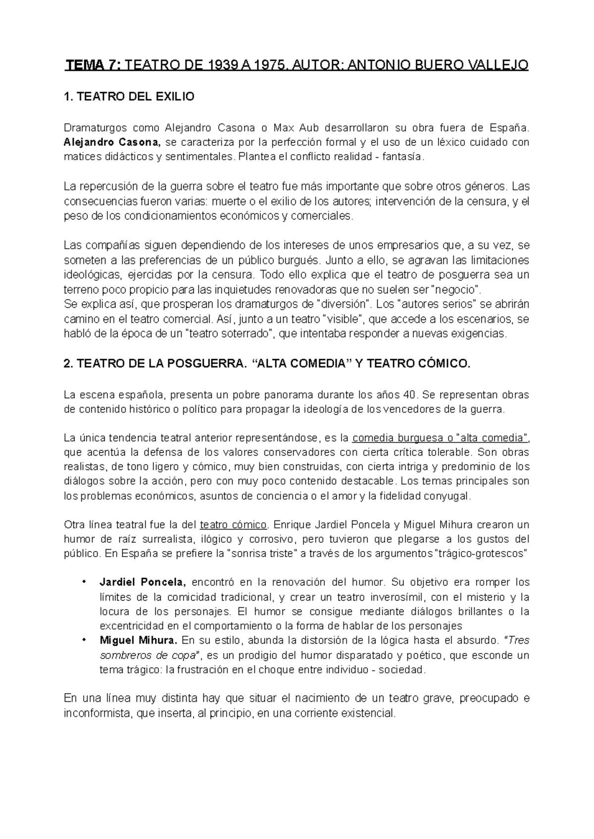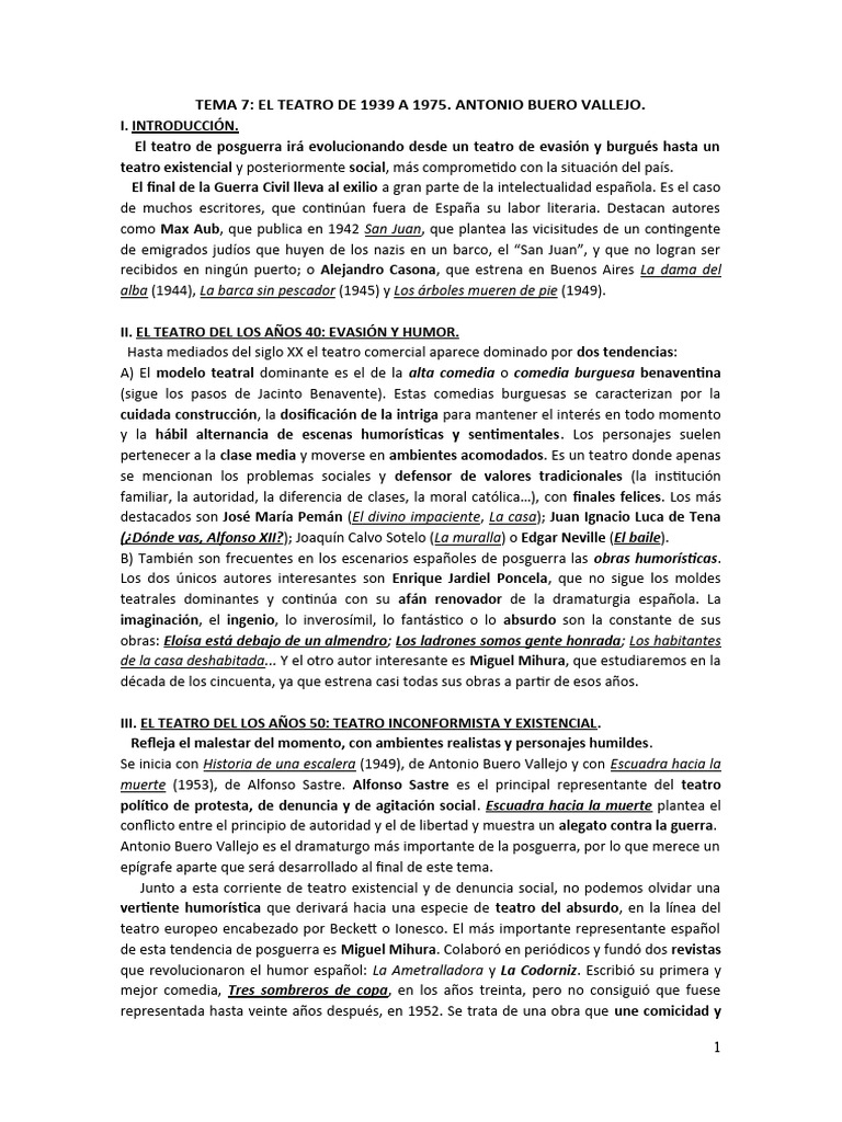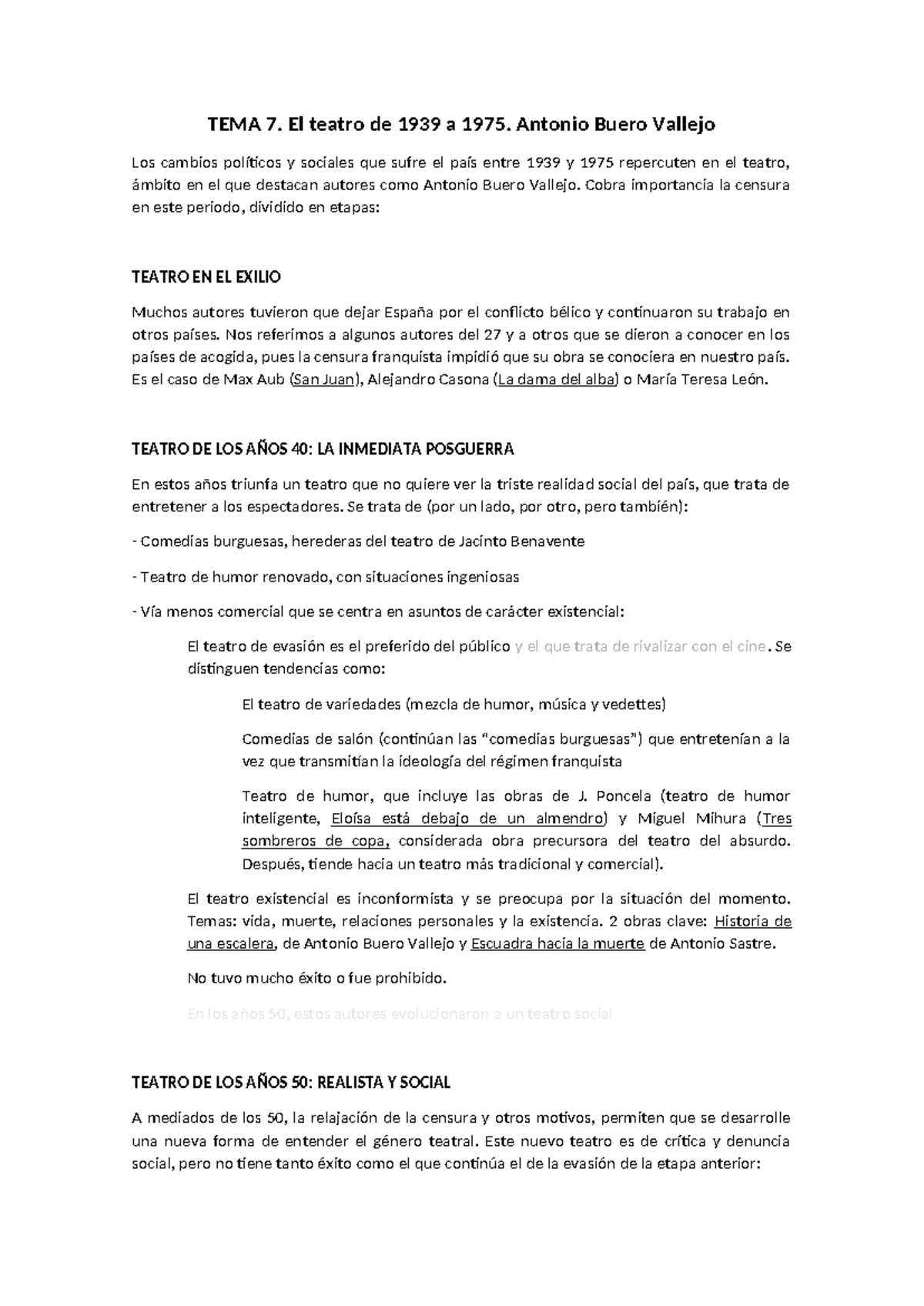 TEMA 7 - RESUMEN TEMA 7 LITERATURA - TEMA 7: TEATRO DE 1939 A 1975 ...