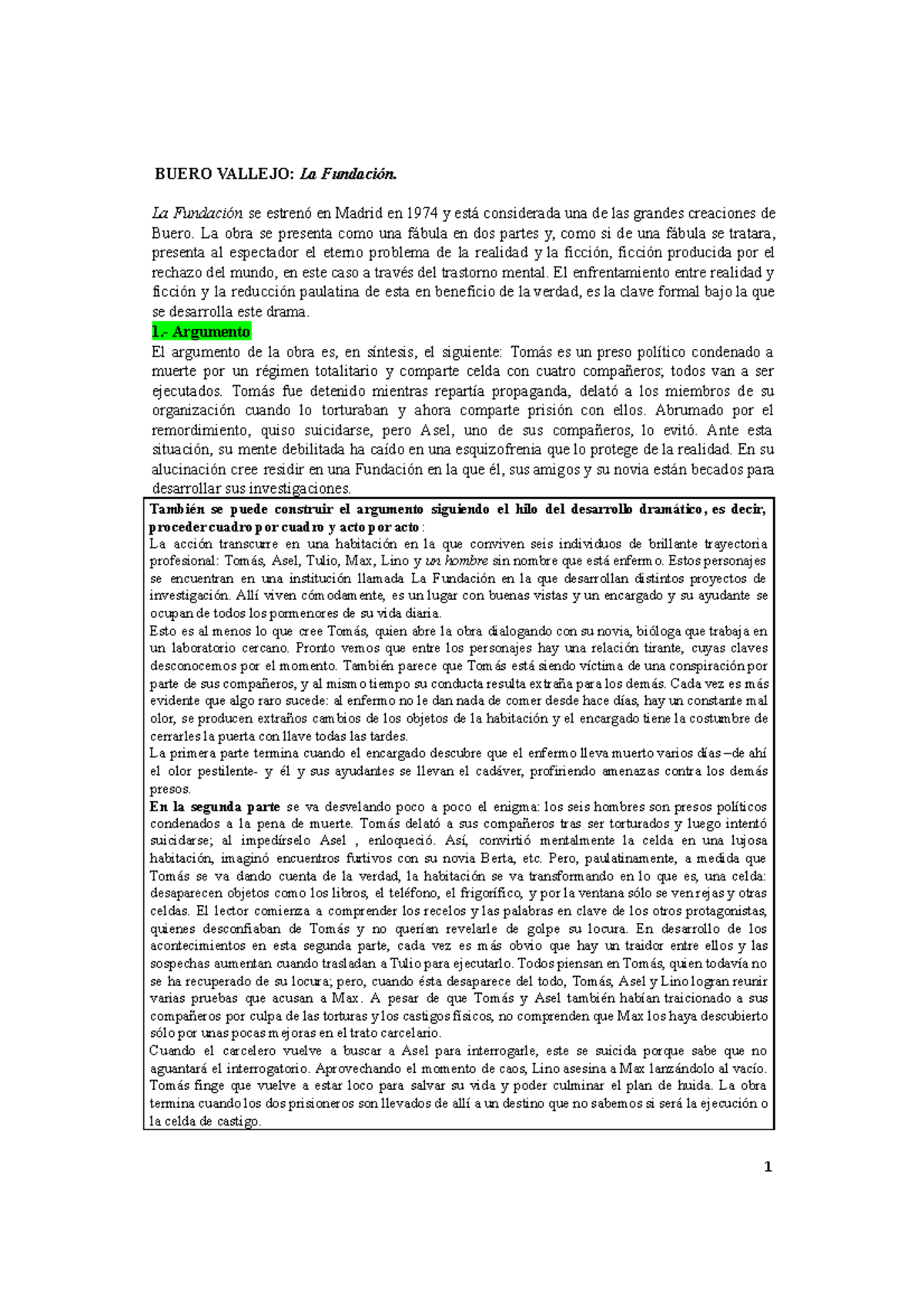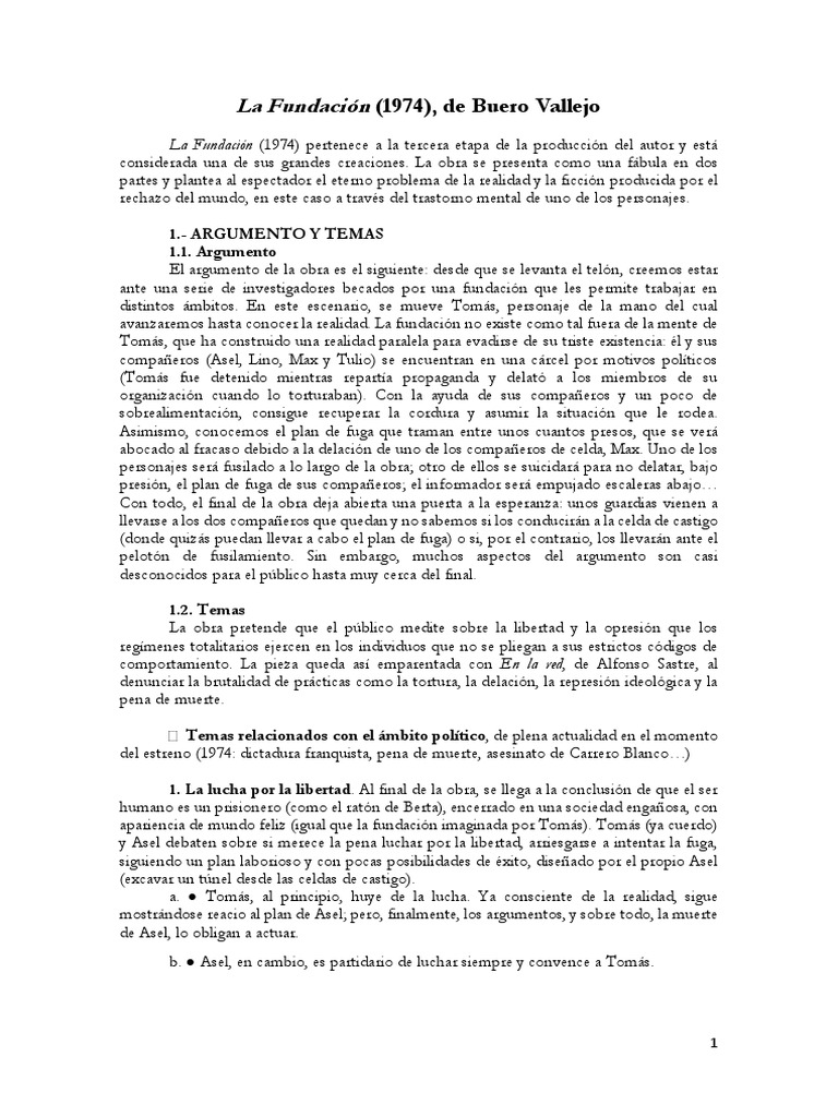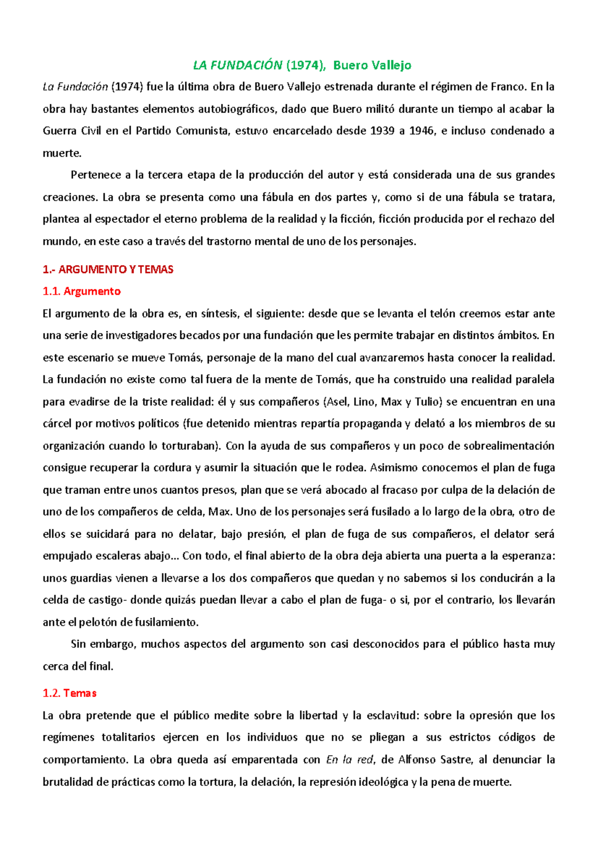 La Fundación de Buero Vallejo | Apuntes de Lengua y Literatura | Docsity