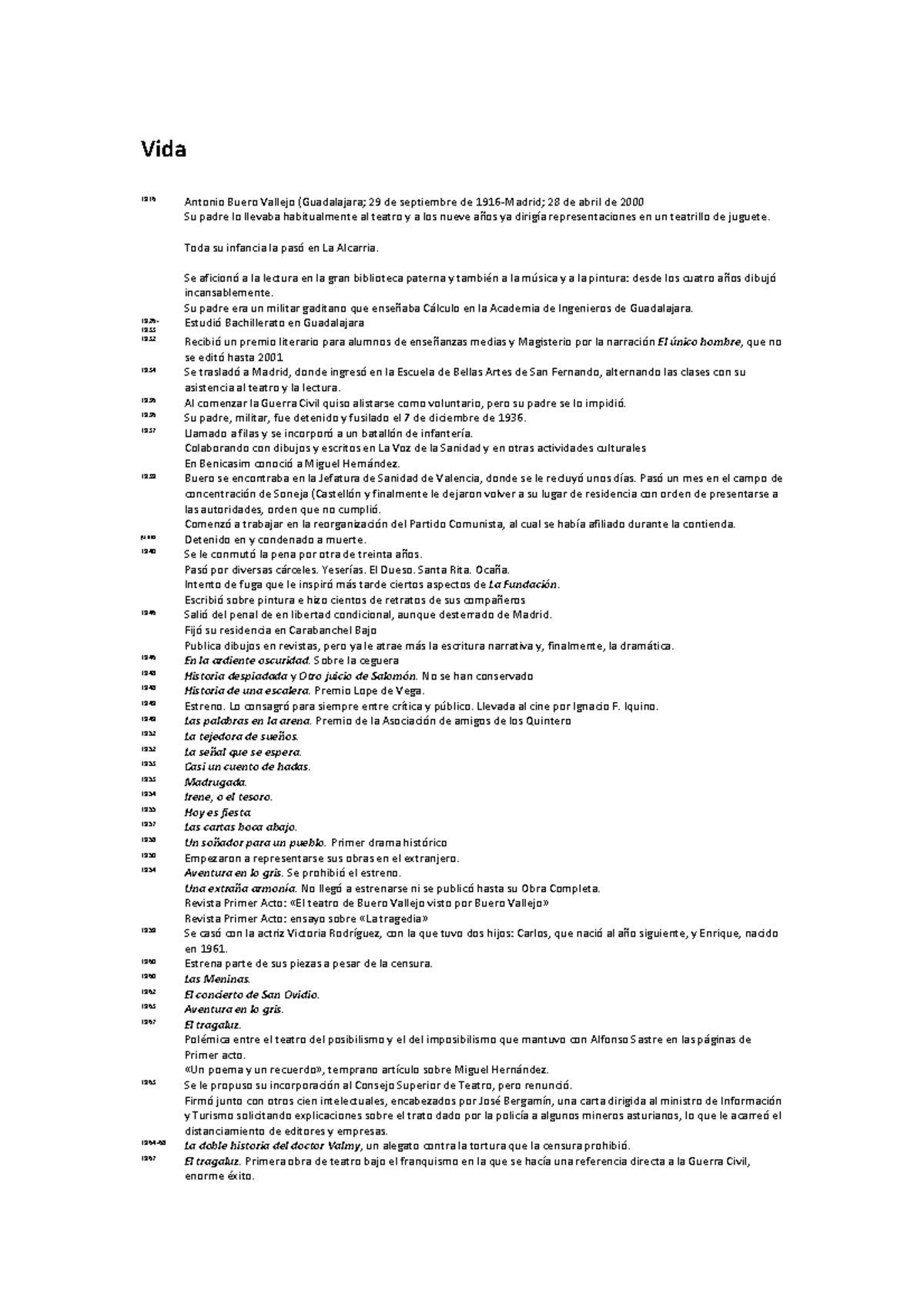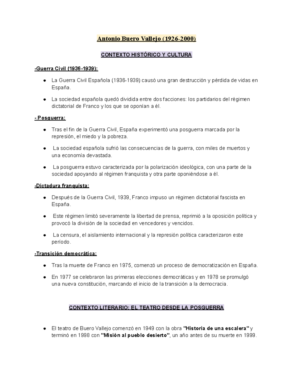Dossier sobre la vida y obra de Antonio Buero Vallejo (1936-2000) - Studocu