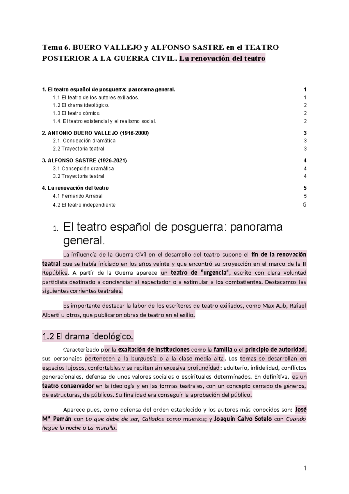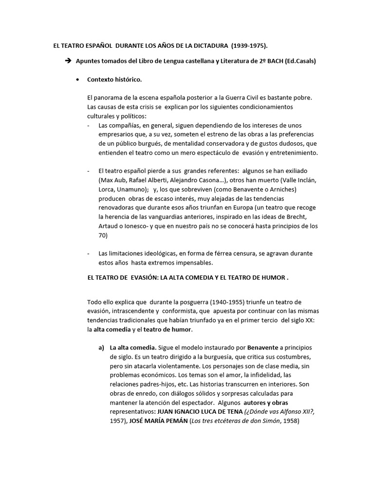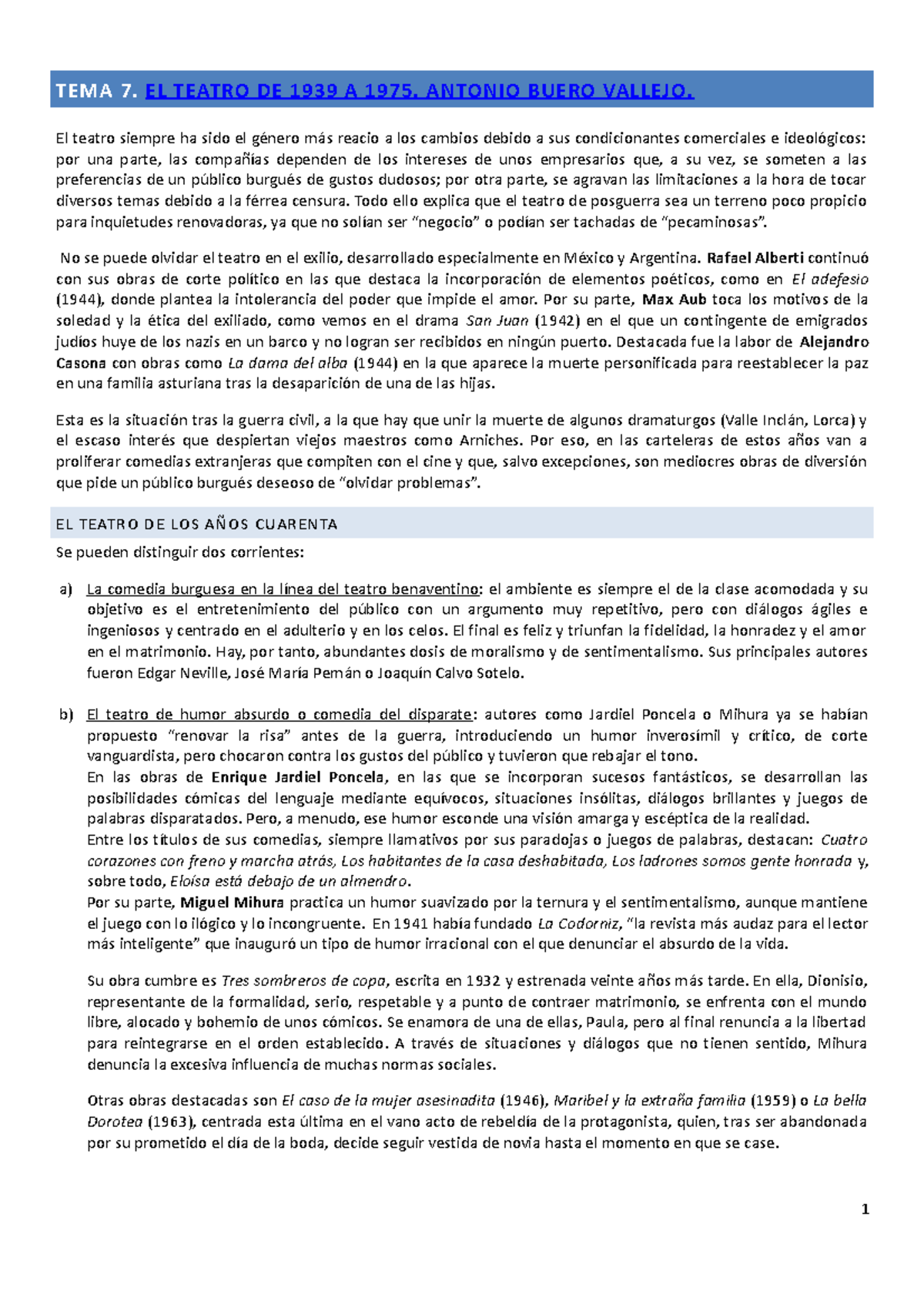 TEMA 7 Literatura - Apuntes tema 7 - TEMA 7. El teatro de 1939 a 1975 ...