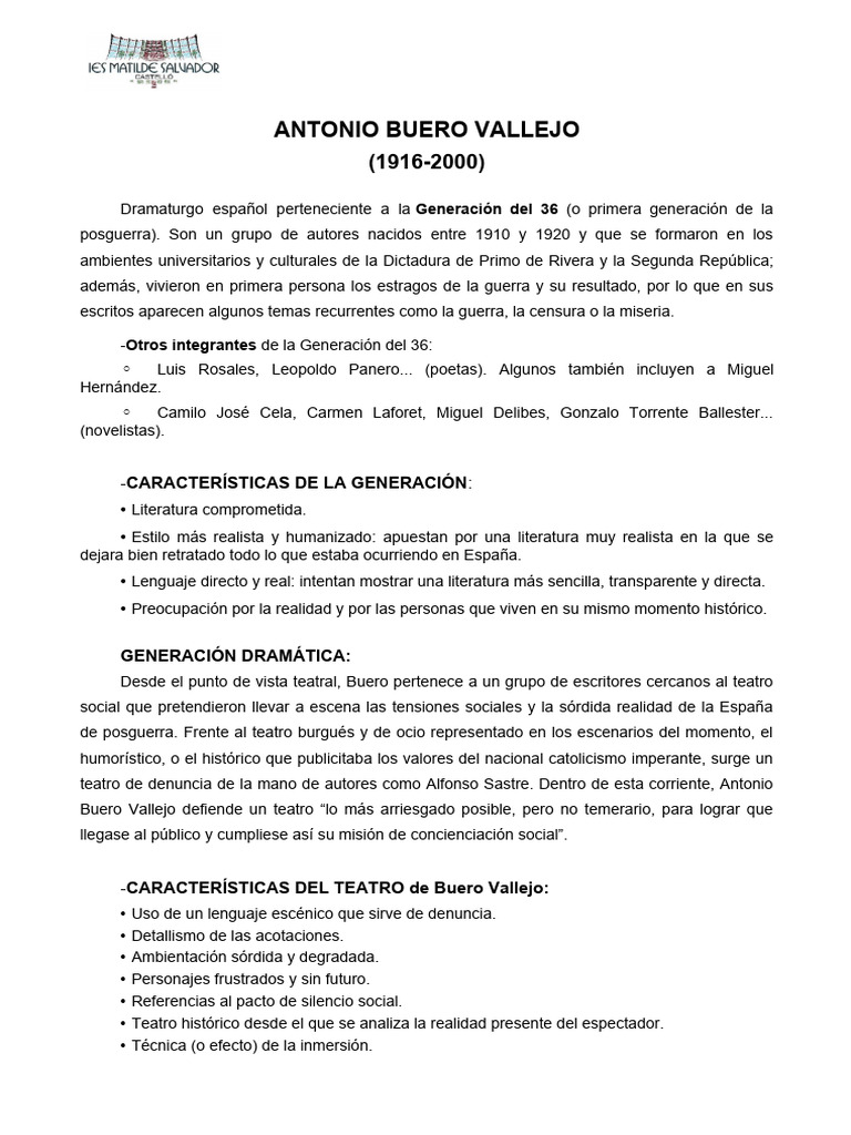 A.Buero Vallejo - apuntes perfectos para la pau - UNIDAD 10 LITERATURA ...