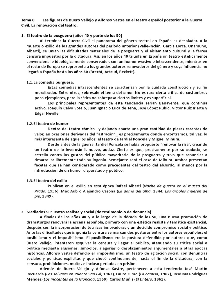 Tema 8. Buero y Sastre en El Teatro de Posguerra 2019 20 Sara | PDF ...