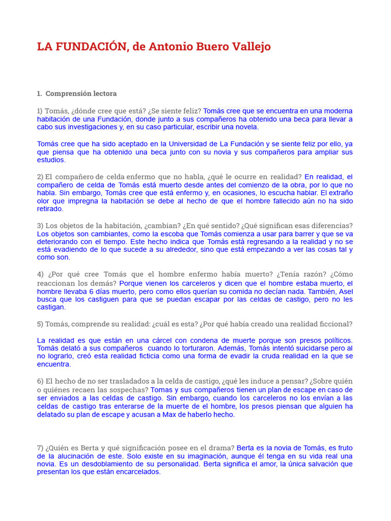 La Fundación, Buero Vallejo | Exámenes selectividad de Lengua y ...