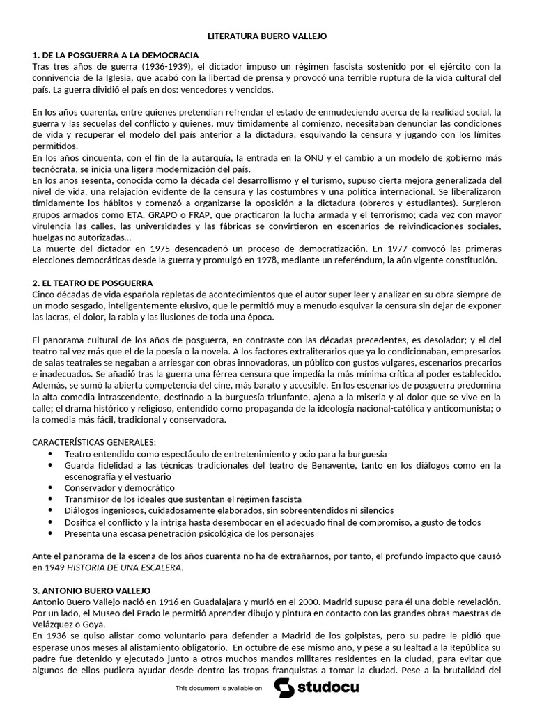 Buero vallejo literatura - Lengua Castellana y Literatura - Studocu