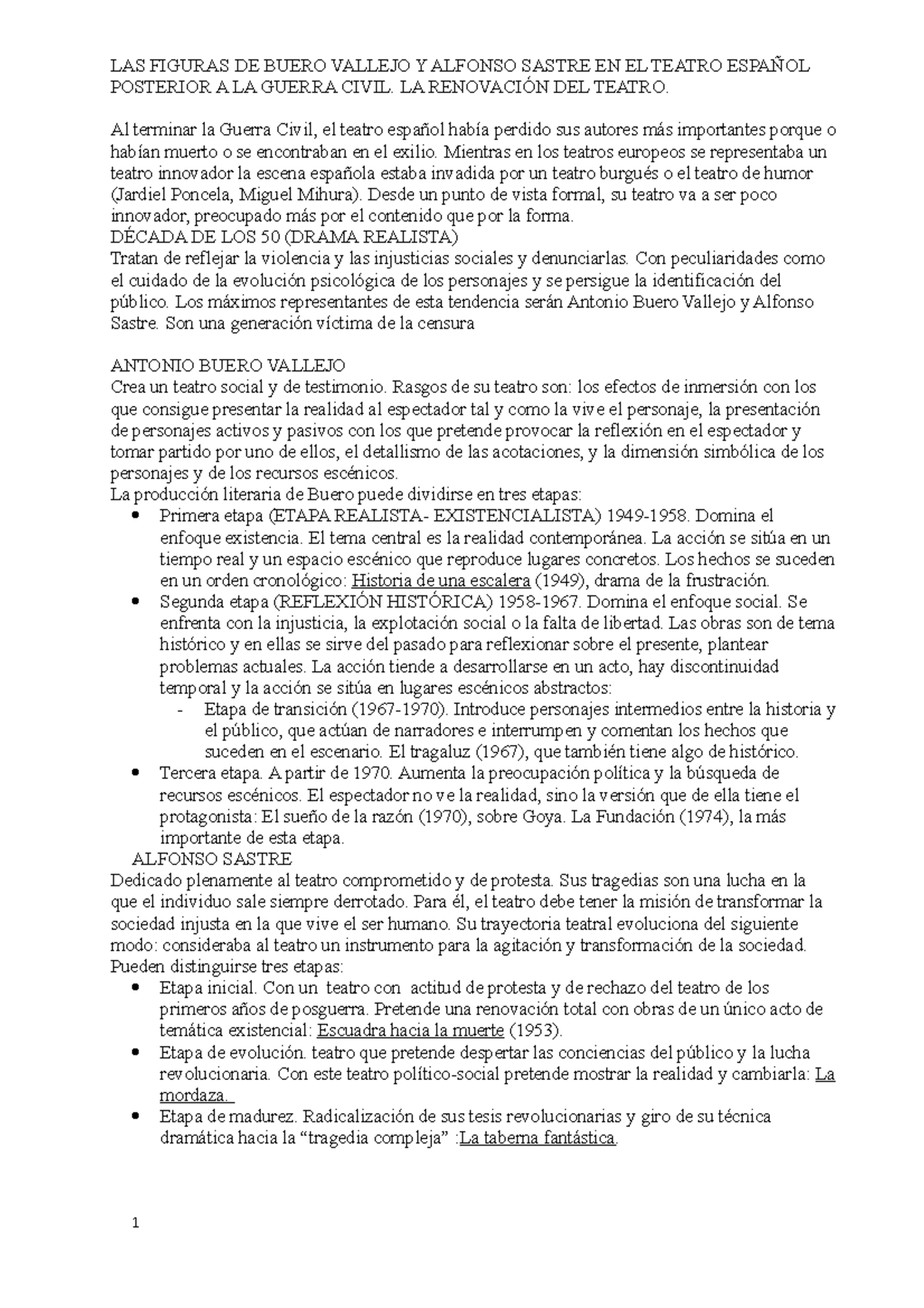SOLUTION: Las figuras de Buero Vallejo y Alfonso Sastre en el teatro ...