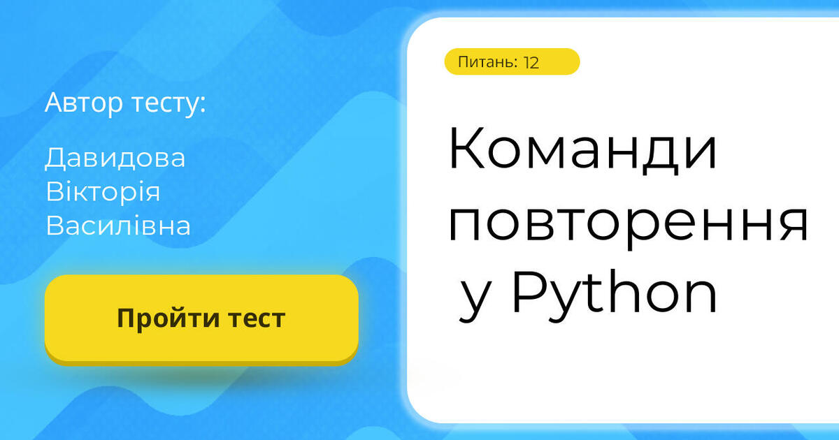 Команди повторення у Python | Тест на 12 запитань. Інформатика