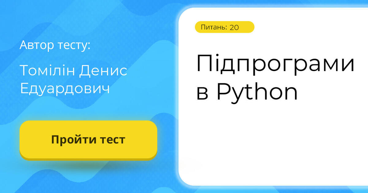 Підпрограми в Python | Тест на 20 запитань. Різне