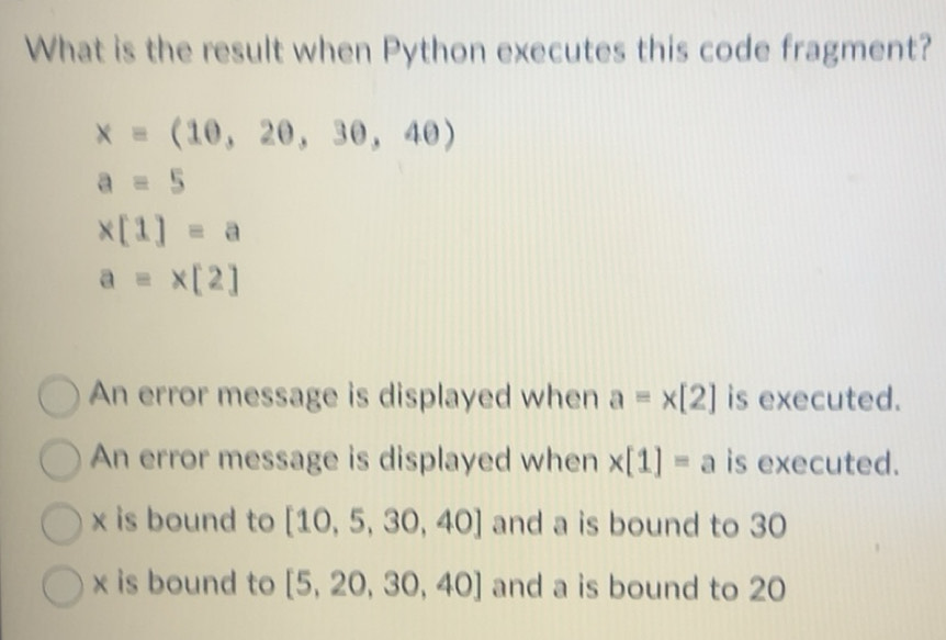 What will be the output of the following Python code? x = [1, 2, 3 ...