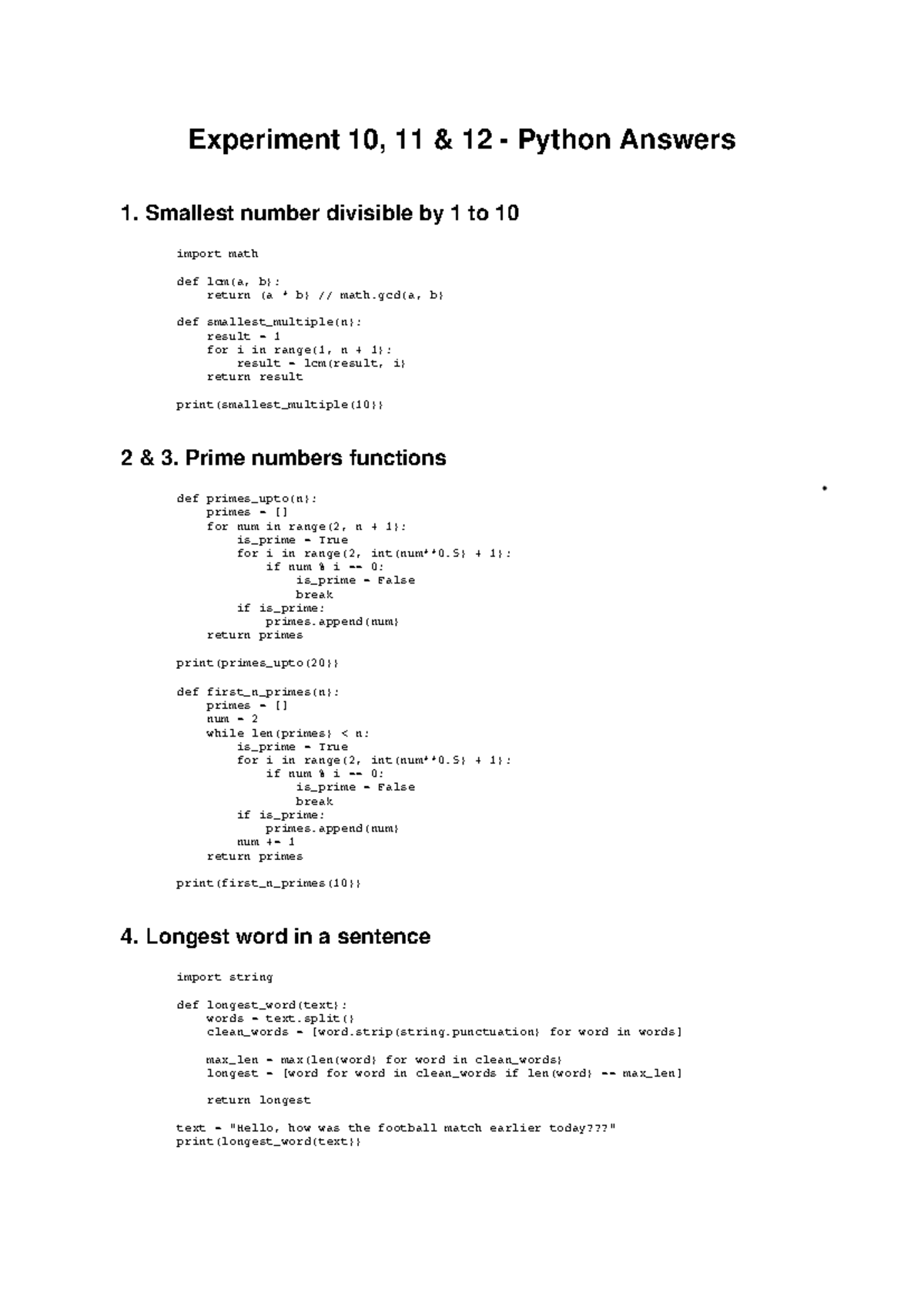 Python Experiments Answers: LCM, Primes, and Longest Word Functions ...