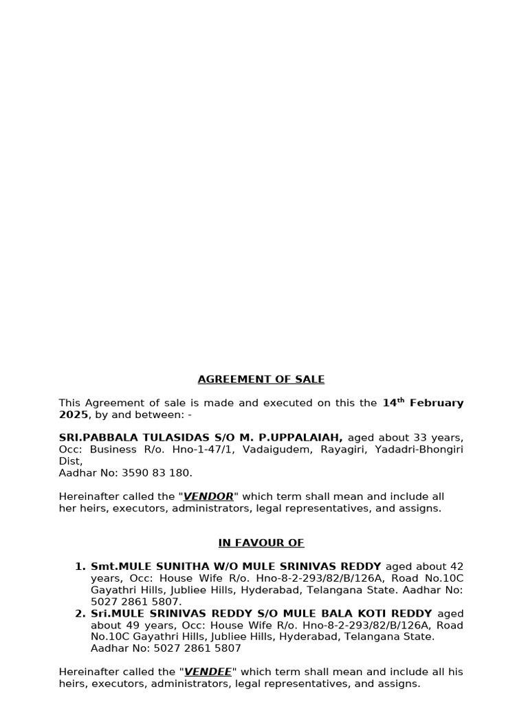 Agreement For Plot Jagadeeshwar Rao | PDF | Mortgage Law | Deed