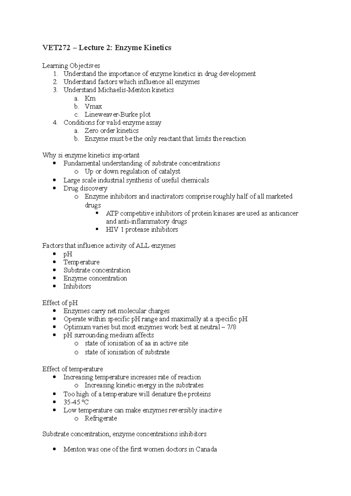 VET272 Lecture 2: Enzyme Kinetics Overview and Key Concepts - Studocu