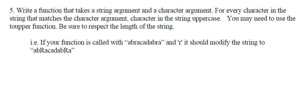 5. Write a function that takes a string argument and a character ...
