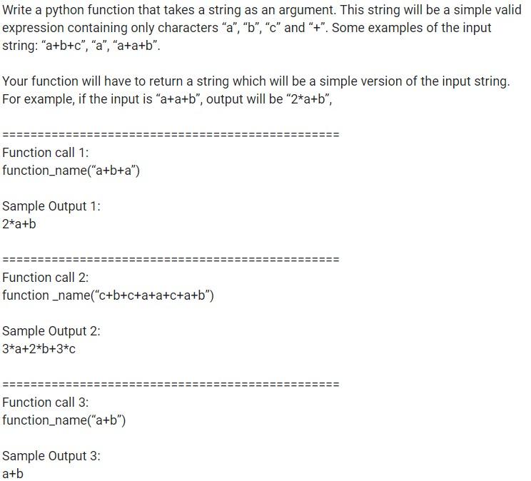 write the above function using strings and test the function using ...