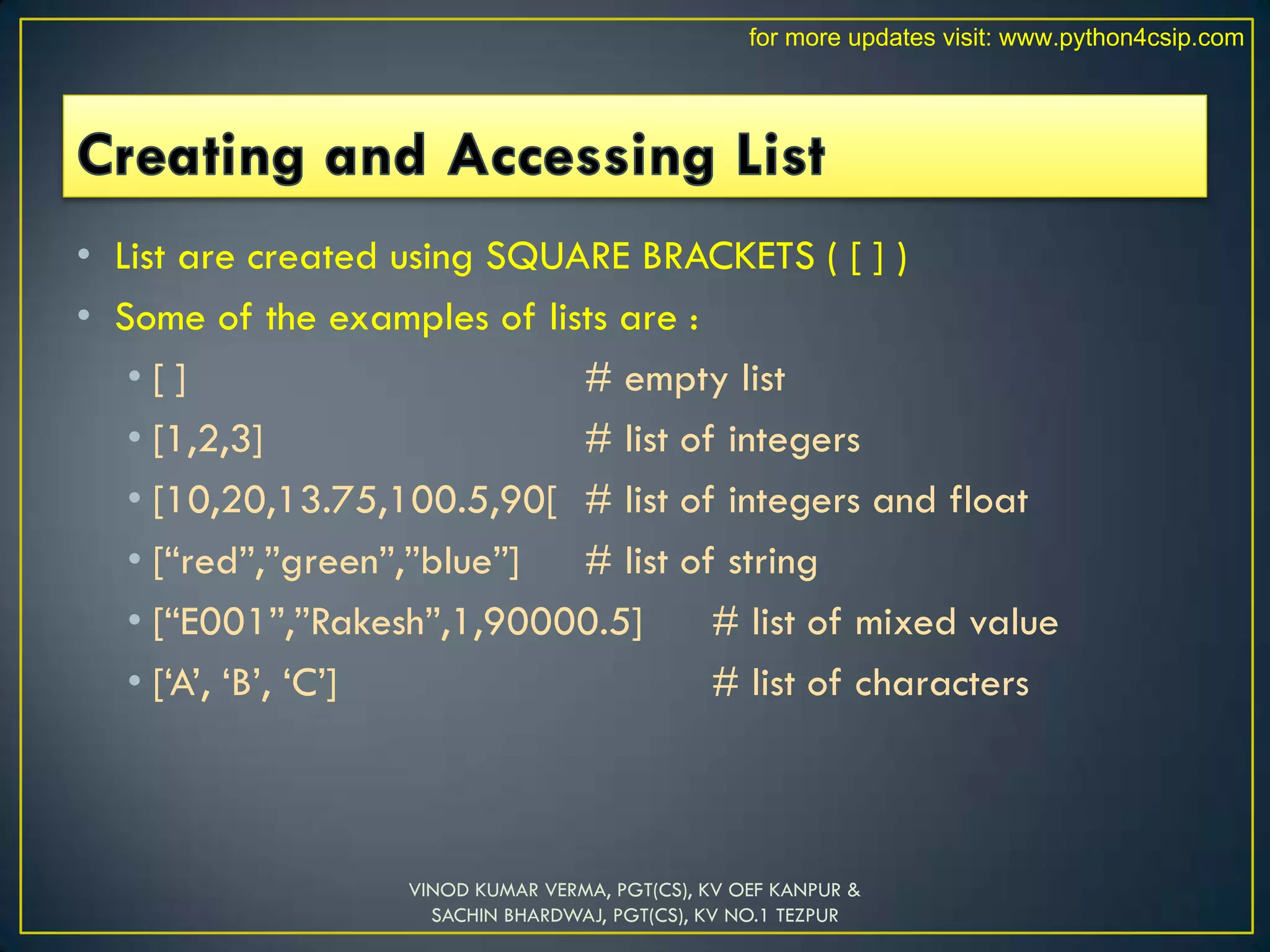 PPT NOV 18 LIST.pptx is about how lists are accessed ,traversed and ...