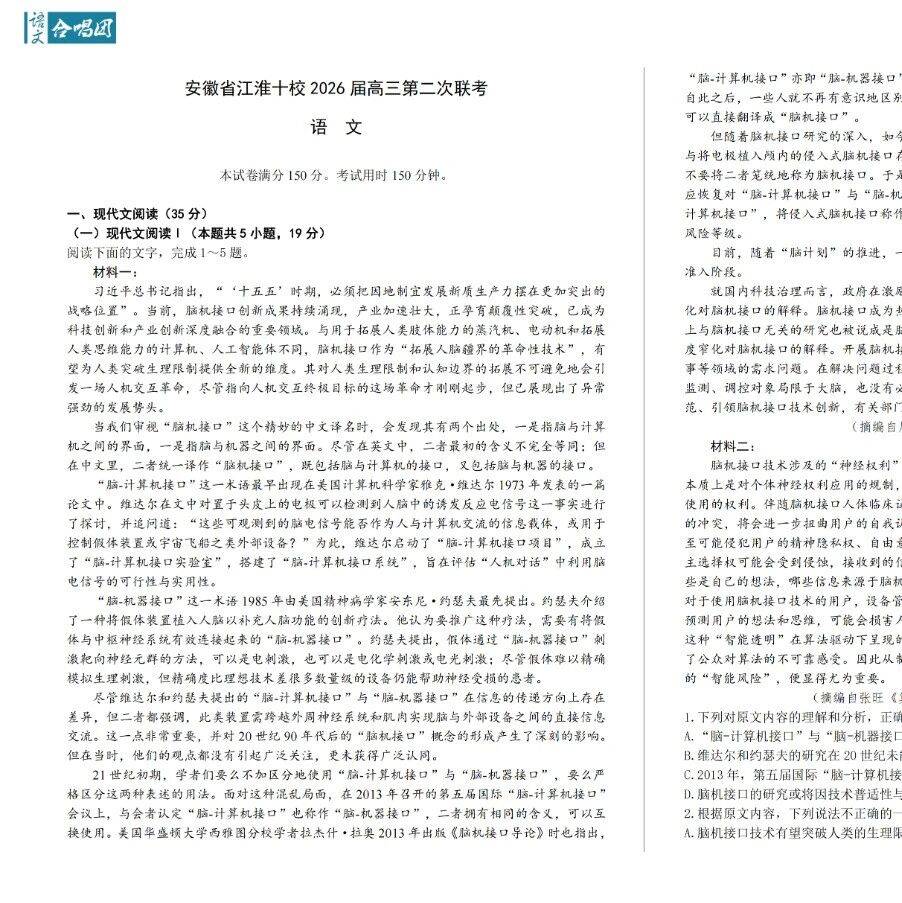 安徽省江淮十校2026届高三第二次联考语文试卷&答案丨附pdf电子版下载_对话框_团长