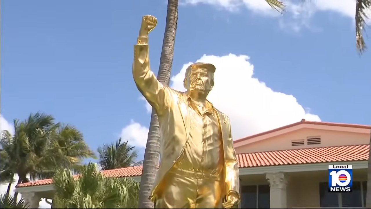 New 15ft gold statue of Trump pumping his fist in the air unveiled at ...