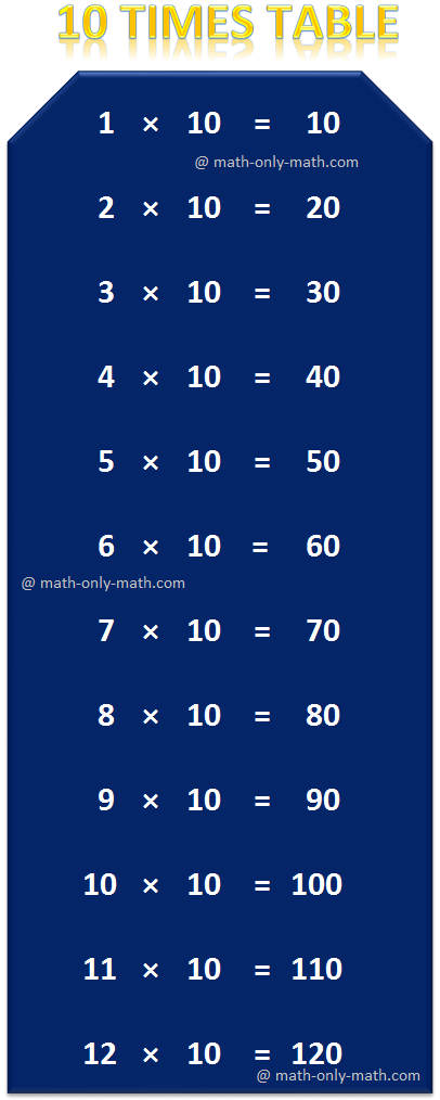 1 to 10 Times Tables | 1 - 10 Times Table Chart |Multiplication Tables