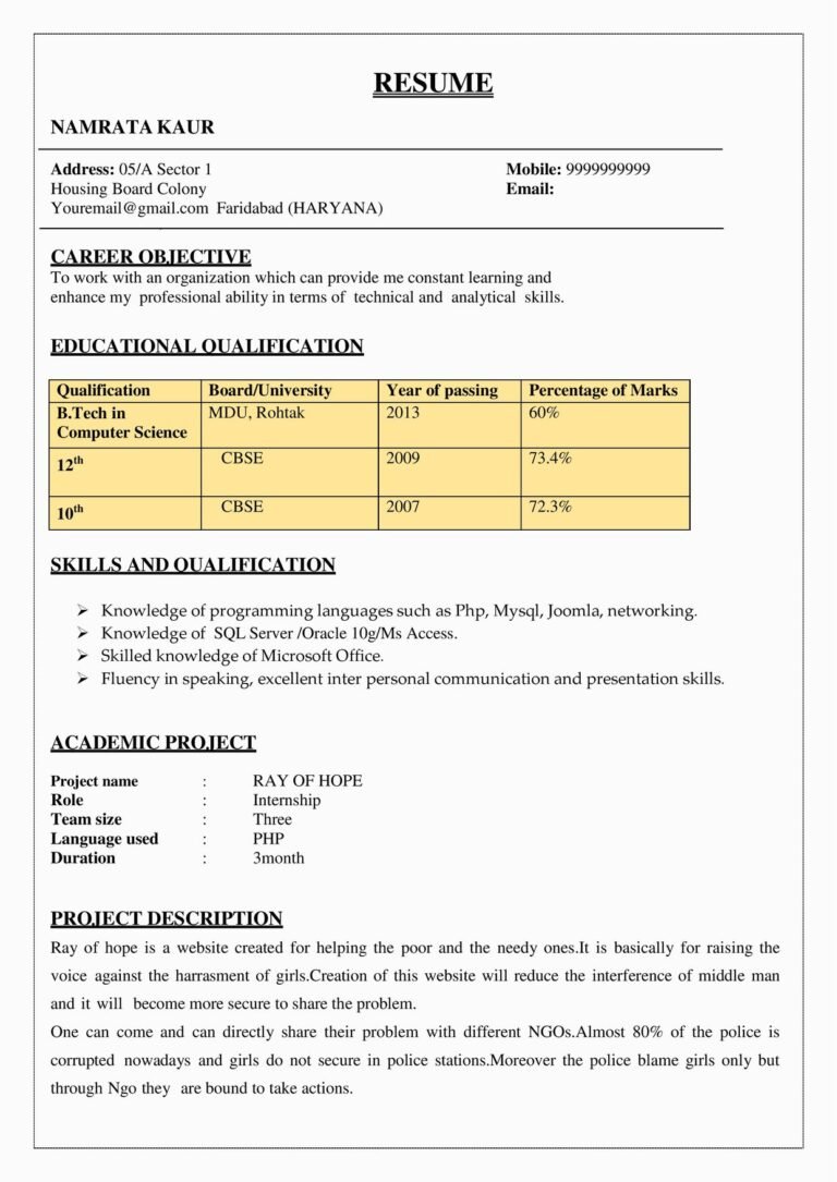 Resume Format For Freshers In Word .docx (1 Page) Editable