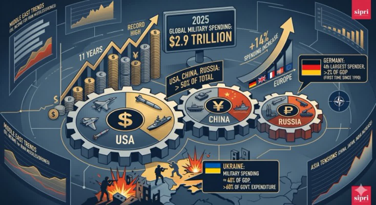 SIPRI "2025년 세계 국방비 2조9000억 달러…11년 연속 역대 최고"