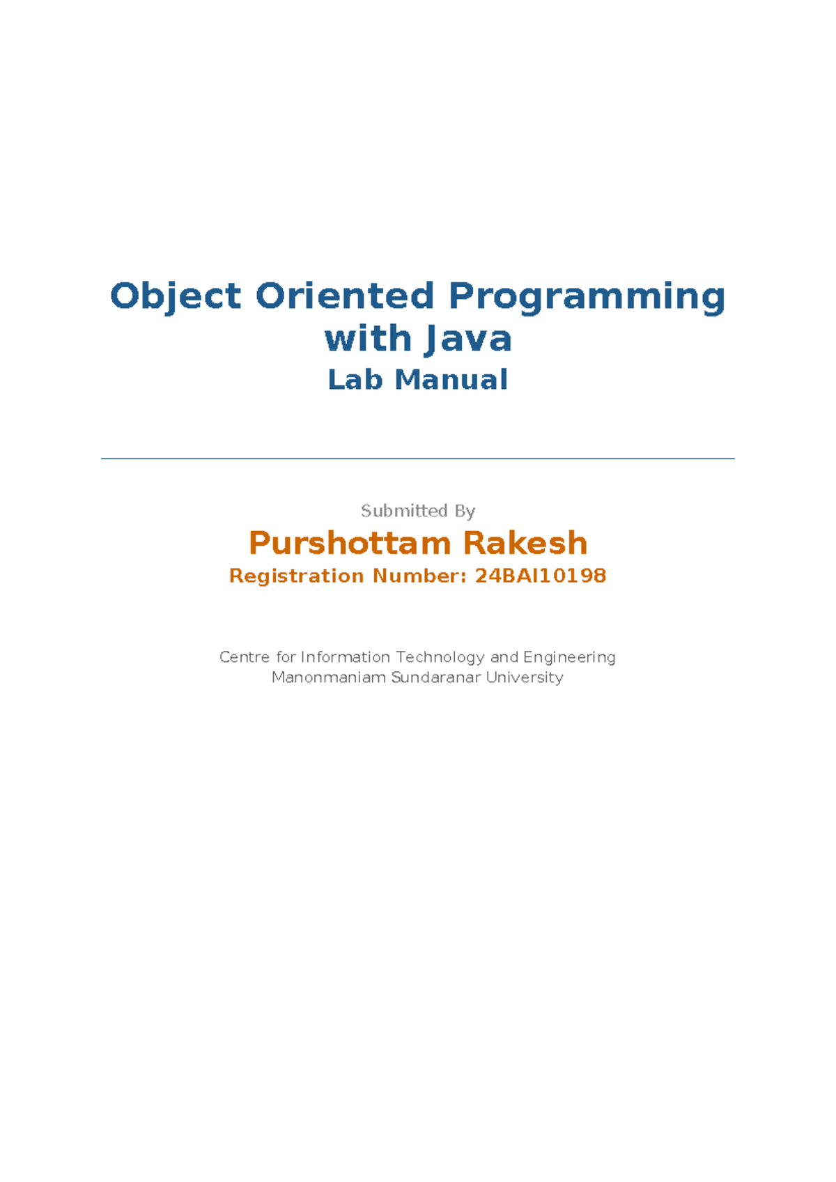OOP with Java Lab Manual (24BAI10198) - Exercises and Solutions - Studocu