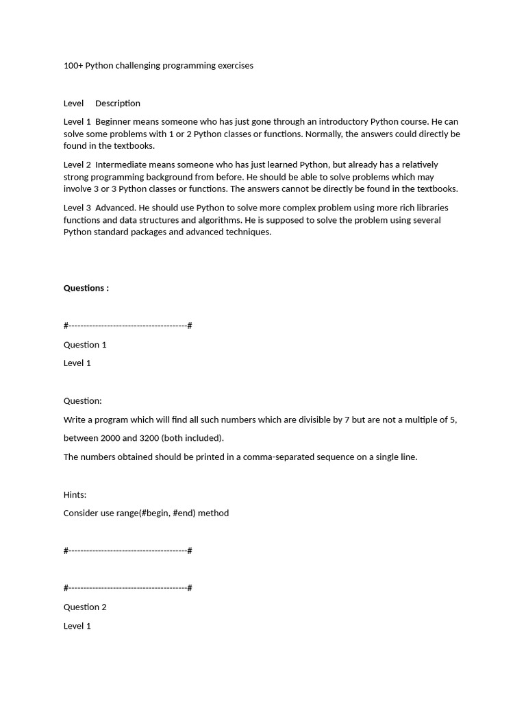 100+ Python challenging programming exercises - Level description Level ...
