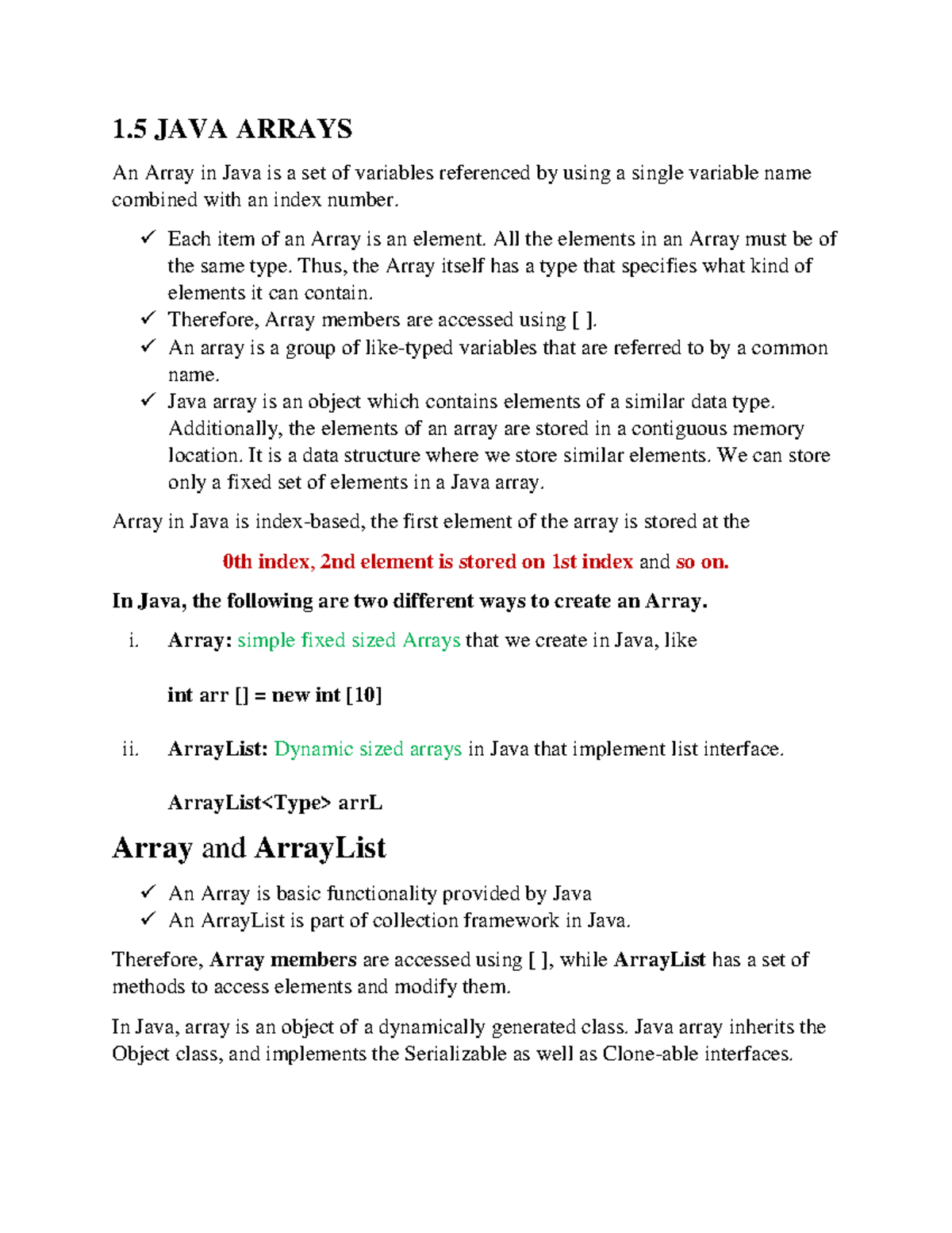 Arrays - notes - Java programming Arrays, Strings, Vectors and Wrapper ...