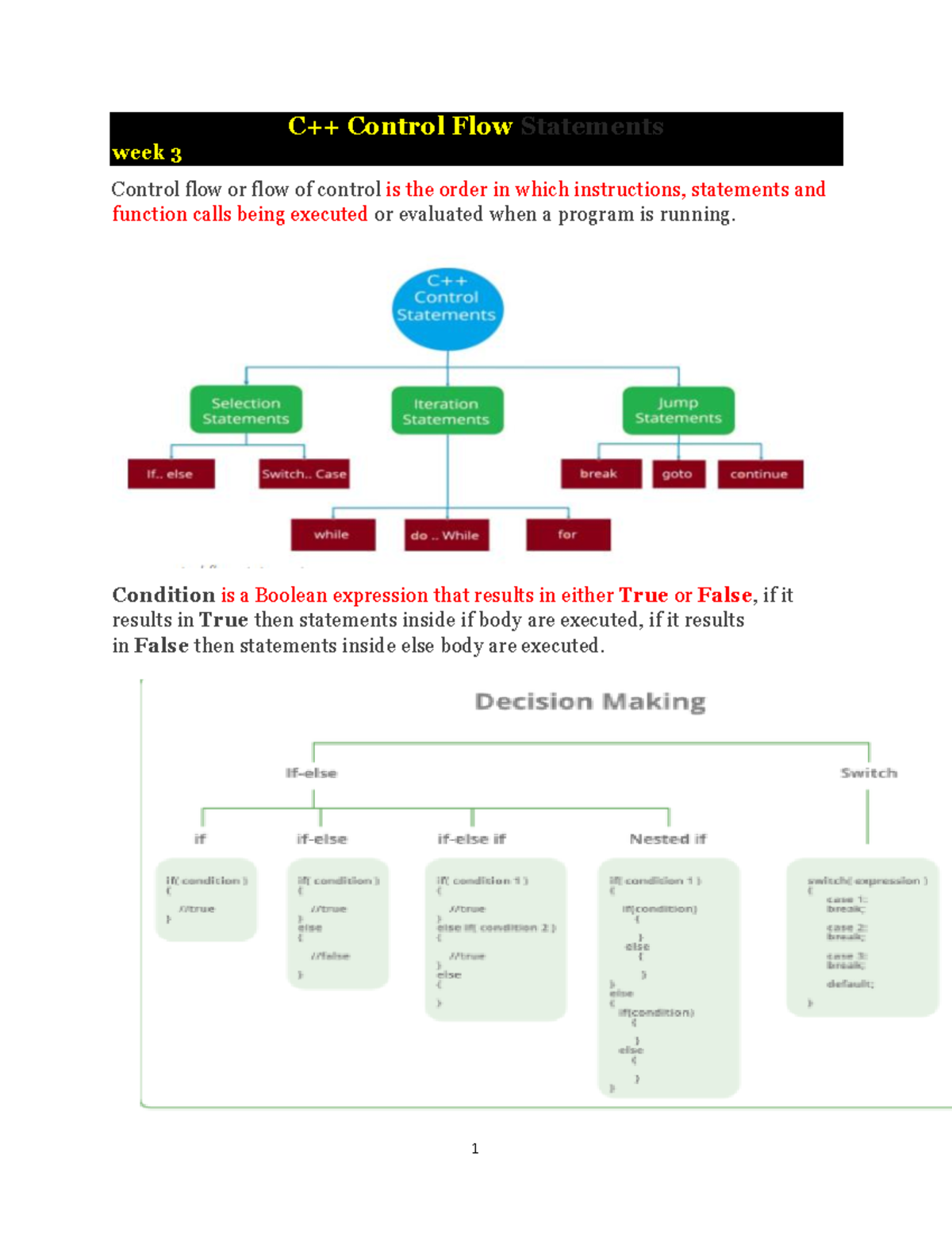 OOP Lesson 3 - C++ Control Flow Statements week 3 Control flow or flow ...