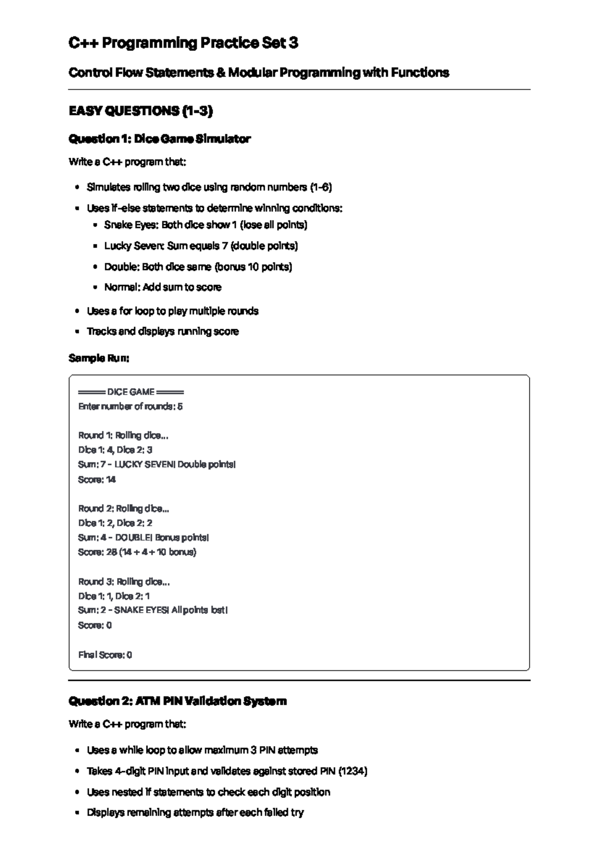Programming Practice Set 3: Control Flow & Functions (Dsoops Wk4) - Studocu