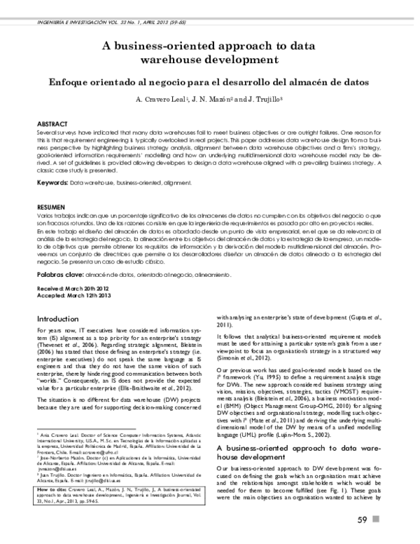 (PDF) A business-oriented approach to data warehouse development