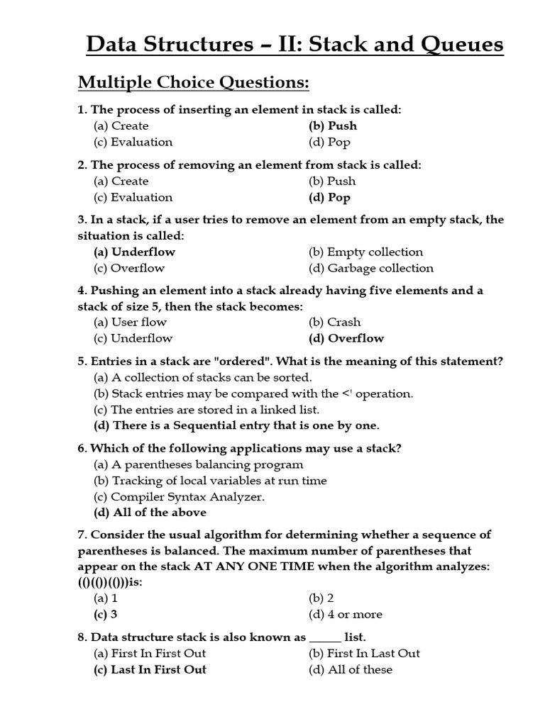 Data Structures: Stack & Queue Operations (CS101) - Studocu