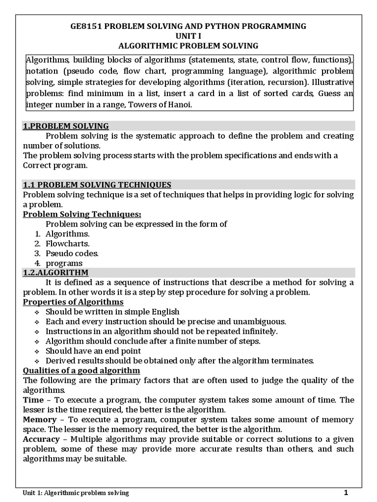 Python Unit 1 - PYTHON NOTES UNIT 1 The Programming Cycle for Python ...