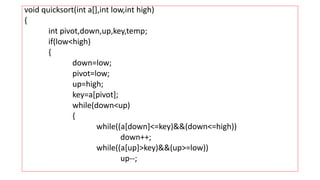 15 Quick SORT - very useful - PROGRAM: #include void quickSort(int [10 ...
