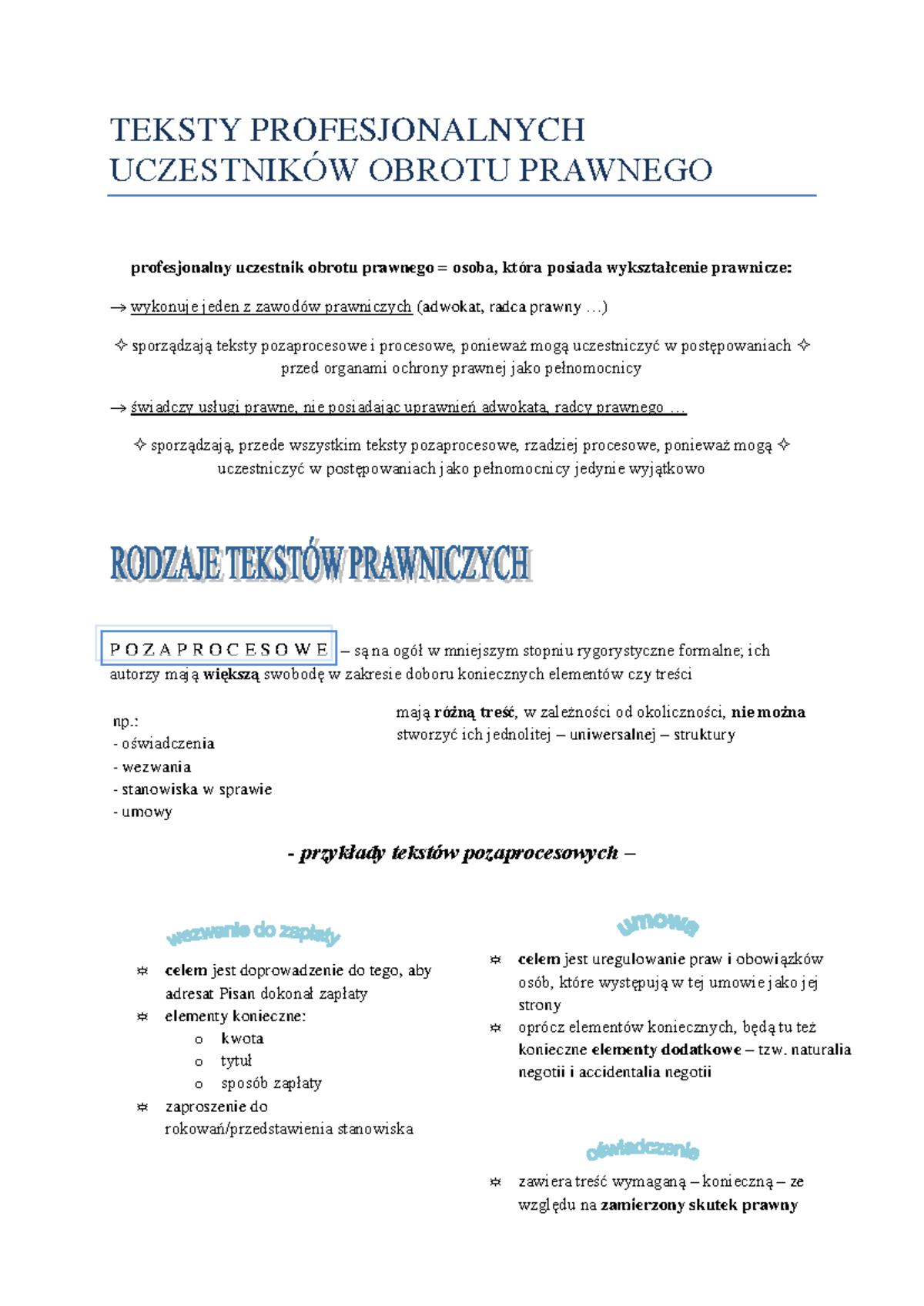 Podstawy analizy tekstów notatki 3 - TEKSTY PROFESJONALNYCH UCZESTNIKÓW ...