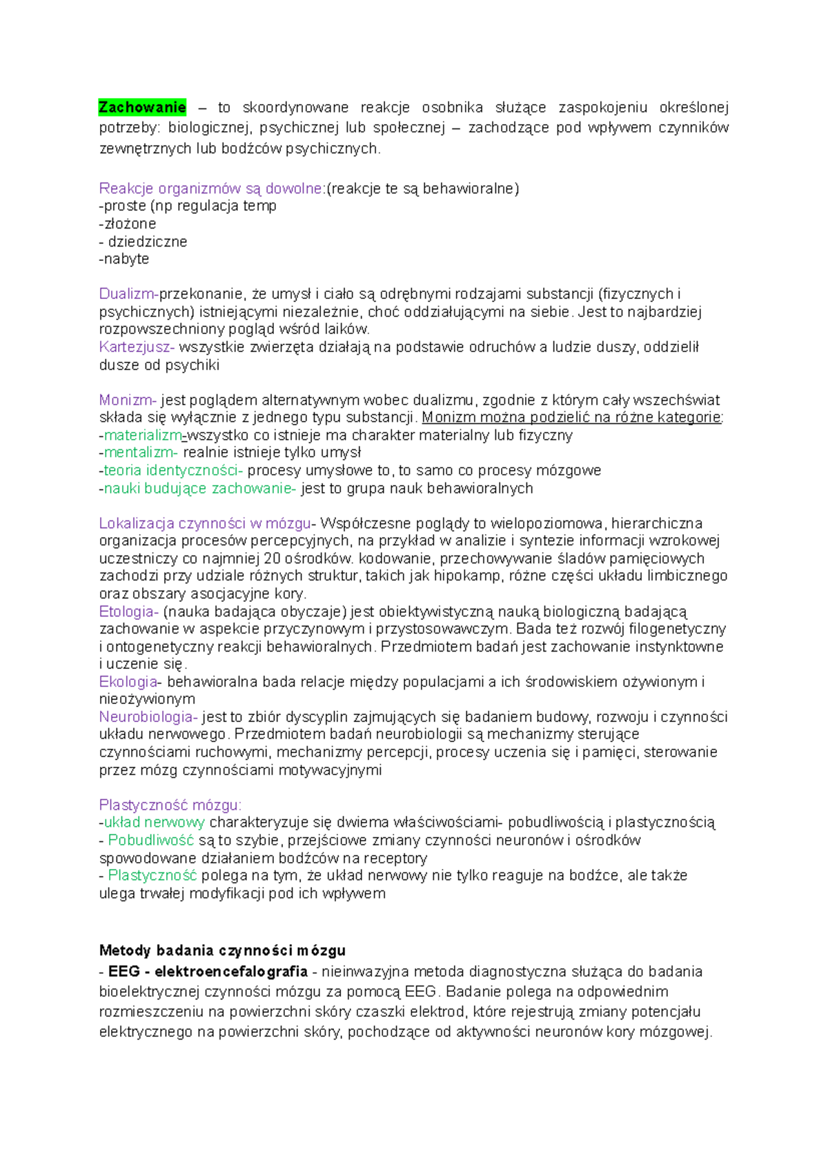 Biologiczne Podstawy Zachowania - Notatki Na Kolokwium2 | PDF