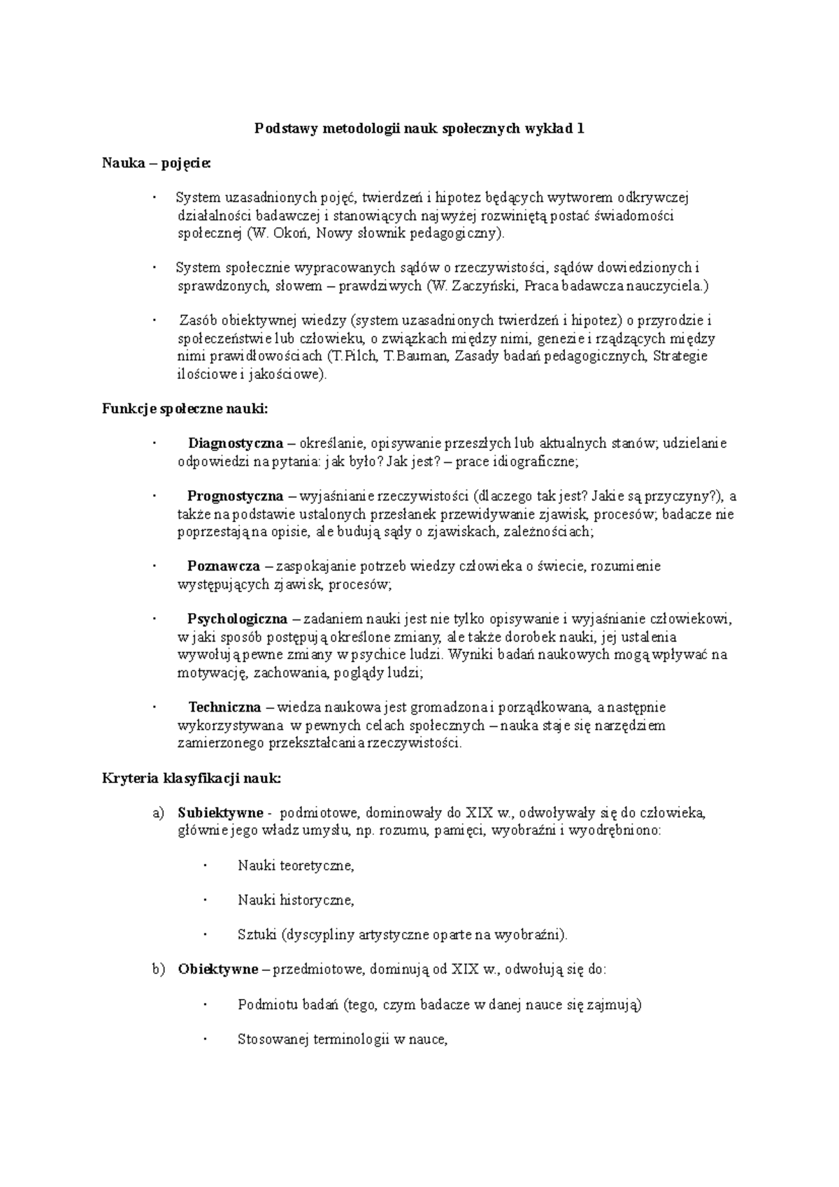 Wykłady - Notatki z wykładów podstawy metodologii nauk społecznych ...