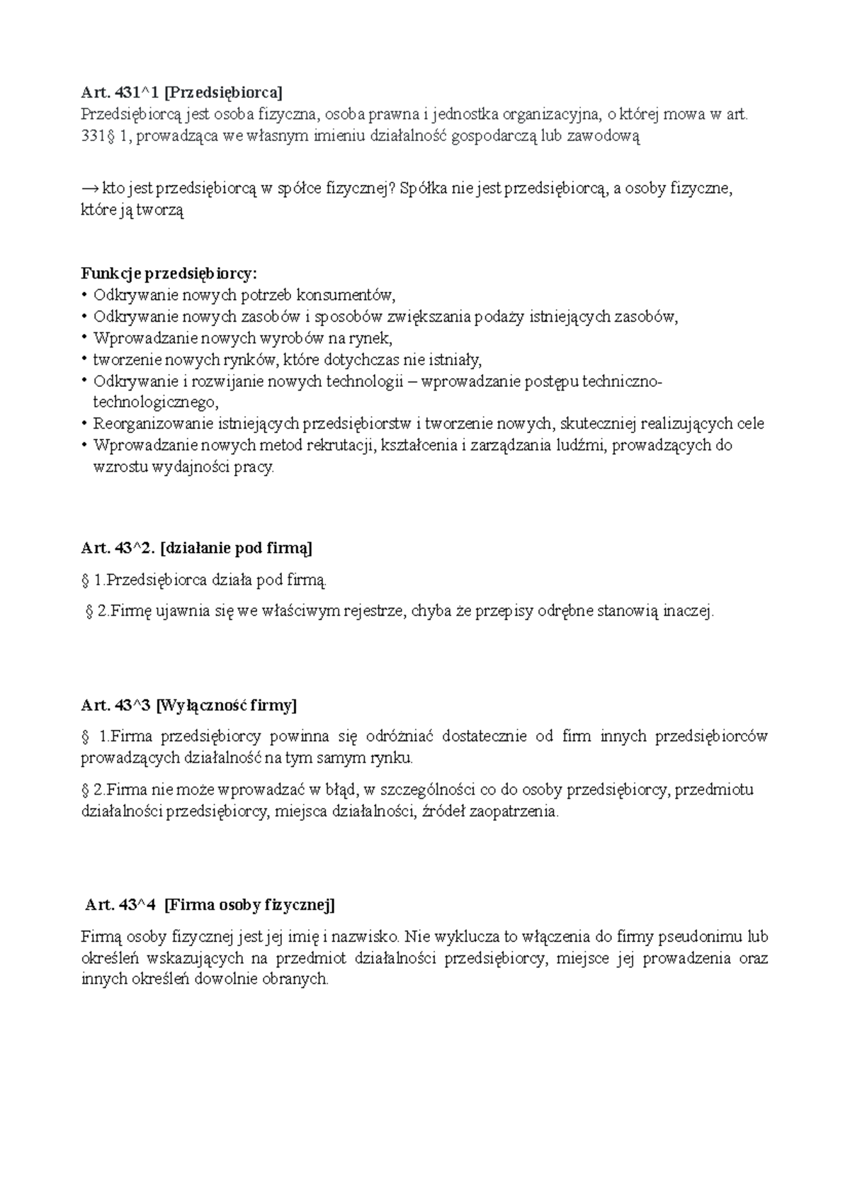 Pp-notatki - Podstawy przedsiebuorczosci - Art. 431^1 [Przedsiębiorca ...