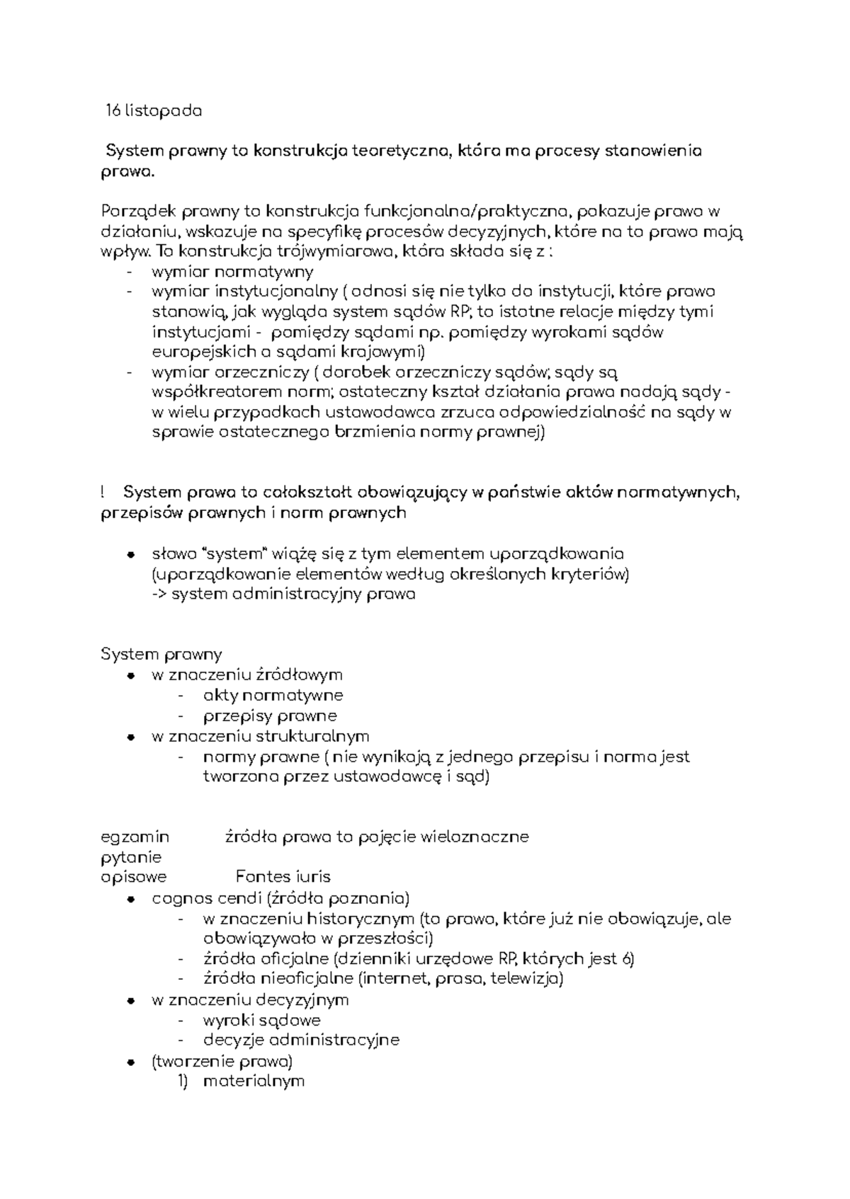 PP w - Podstawy prawa - notatki z wykładu - 16 listopada System prawny ...