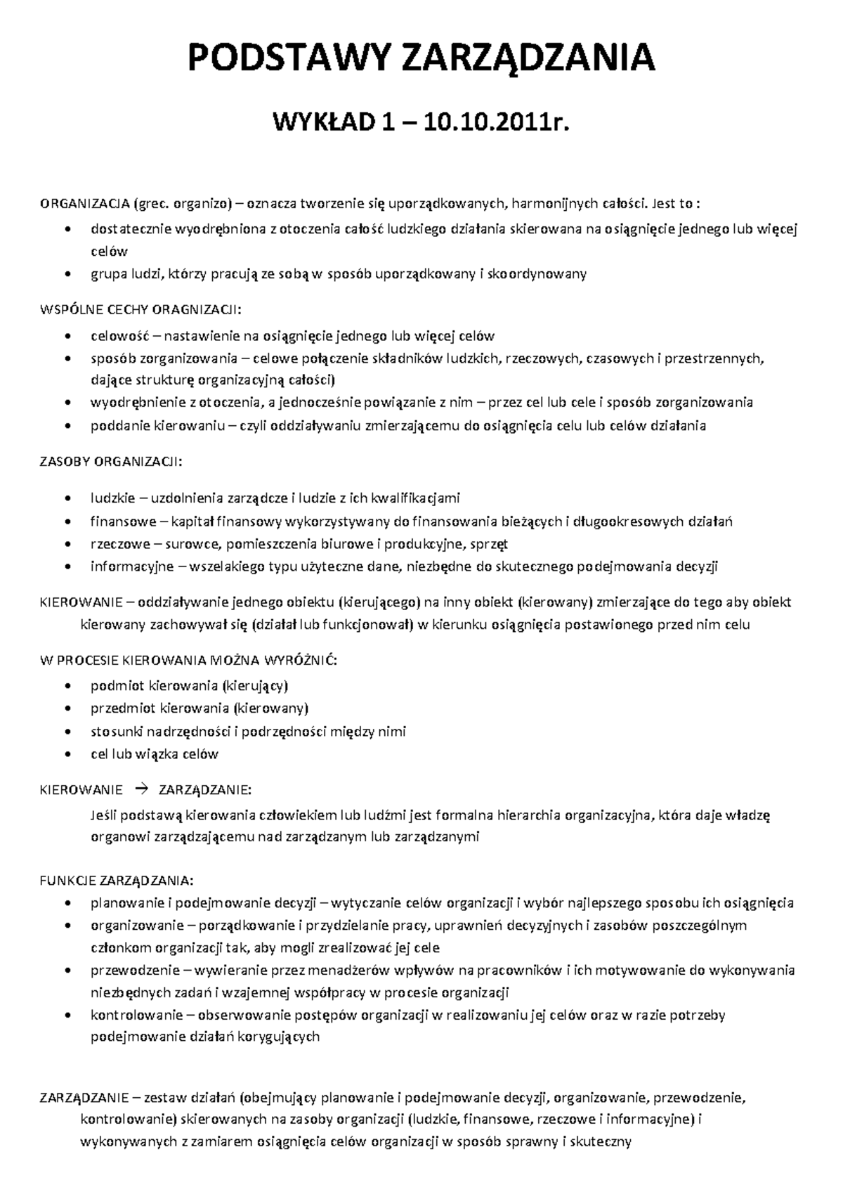 Podstawy zarządzania - Notatki z wykładu 1-10 - PODSTAWY Dr Jaworski ...
