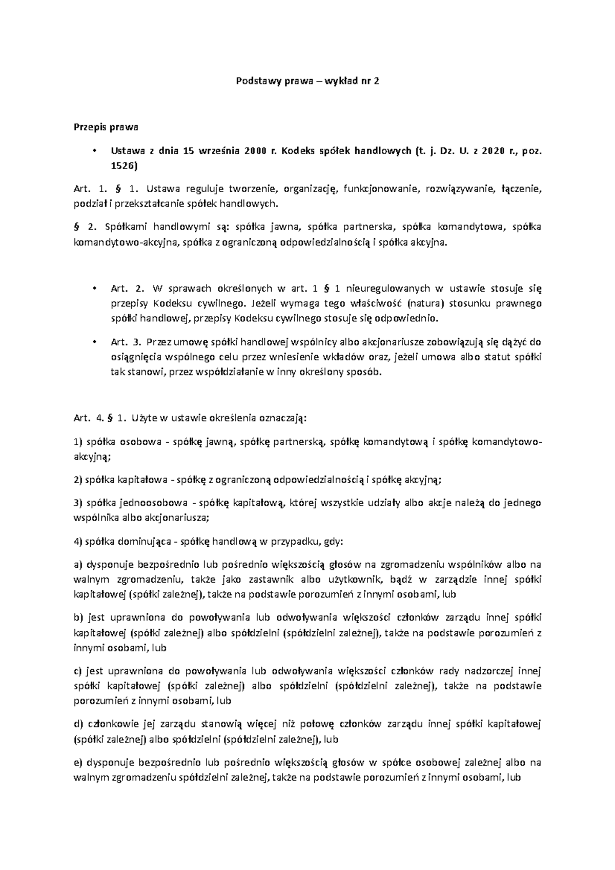 Podstawy prawa w. 2a - Notatki z wykładu 2 - Podstawy prawa – wykład nr ...