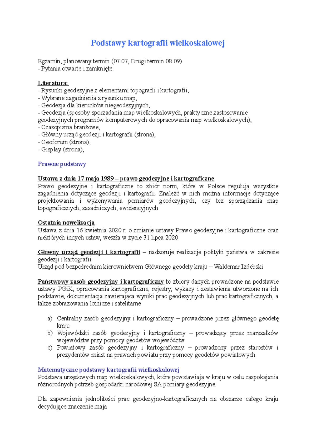 Podstawy geografii wielkoskalowej - notatki - Podstawy kartografii ...