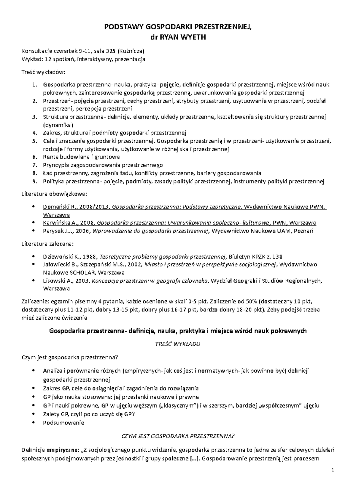 notatki wykład podstawy gospodarki przestrzennej - PODSTAWY GOSPODARKI ...