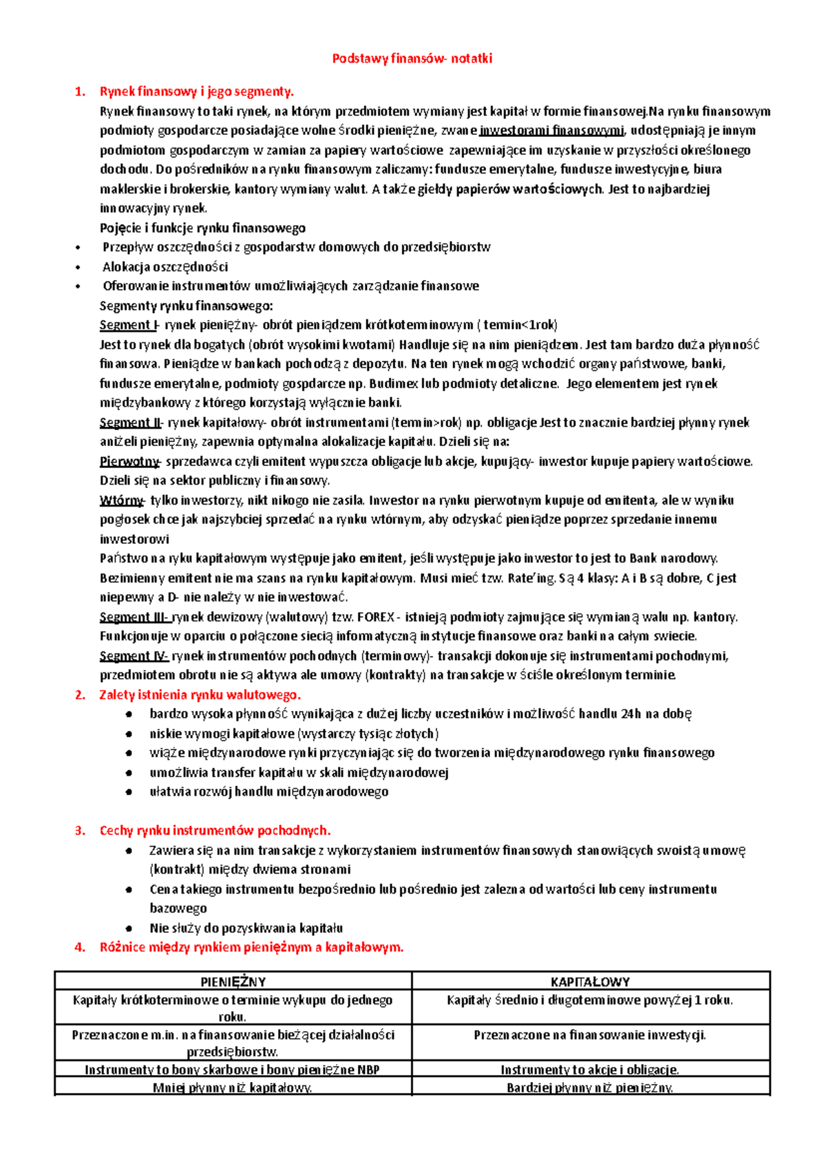 Podstawy-finansów- Notatki - Podstawy finansów- notatki Rynek finansowy ...