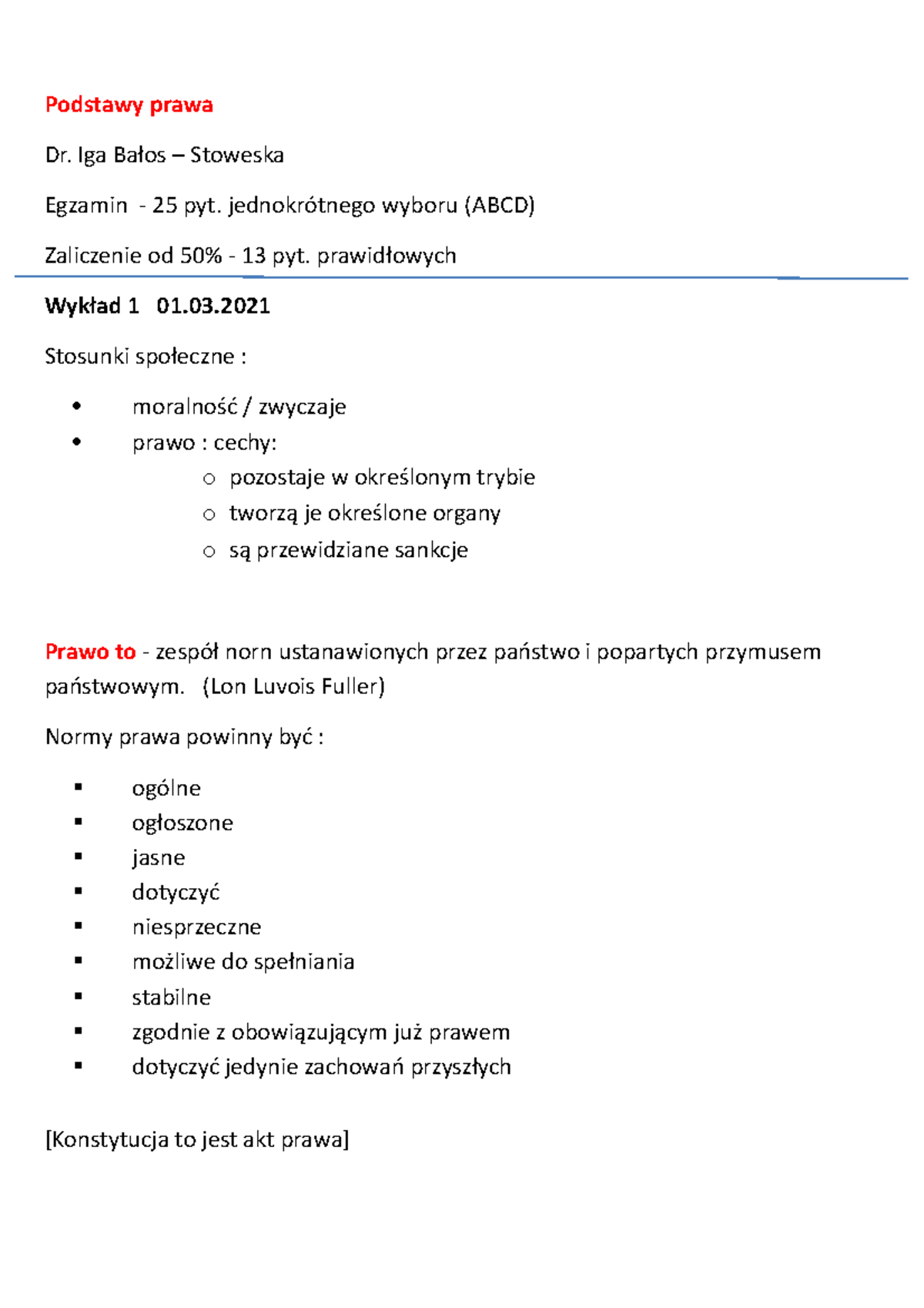 Podstawy Prawa - Notatki z Wykładów (Prawo) - Studocu