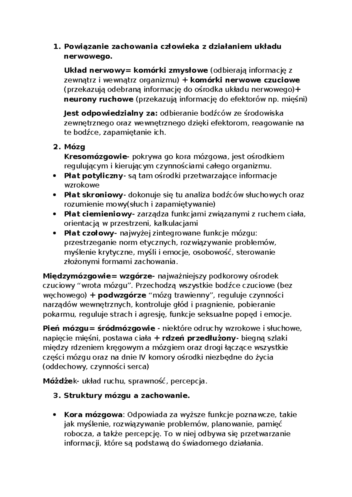 Biomedyczne podstawy - notatki - Powiązanie zachowania człowieka z ...