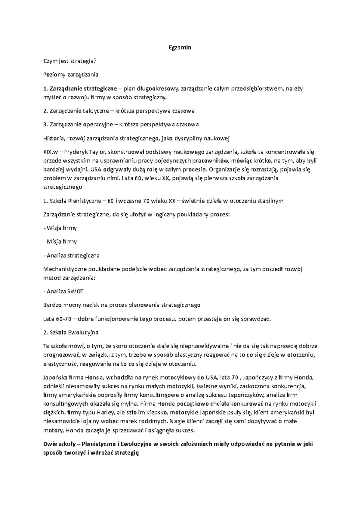 Notatki Podstawy Strategii - Egzamin Czym jest strategia? Poziomy ...